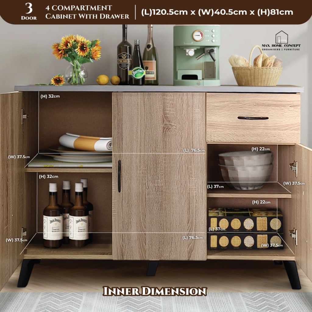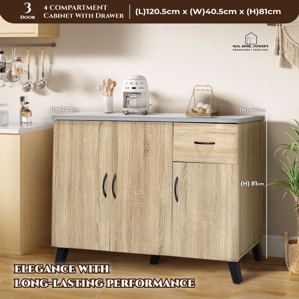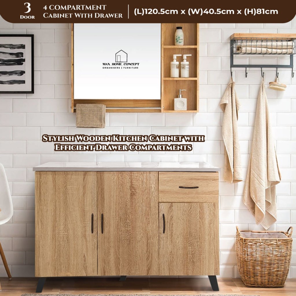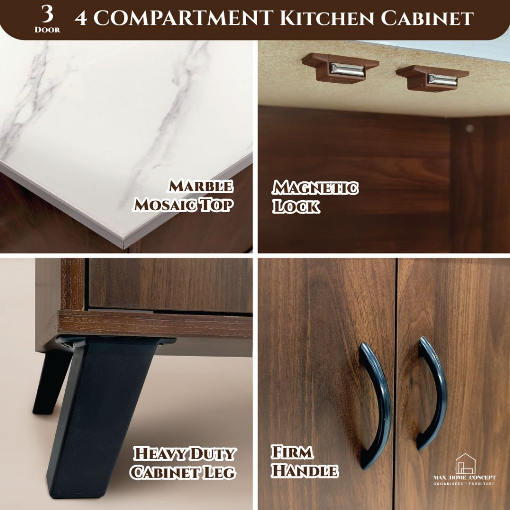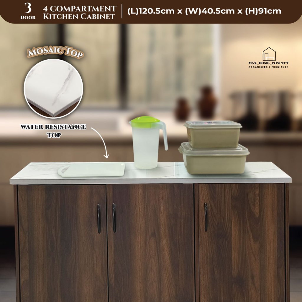 TERMURAH | 3 DOOR MOSAIC TOP KITCHEN CABINET WITH DRAWER & COMPARTMENTS | KABINET DAPUR KAYU | MOSAIC TOP KABINET DAPUR