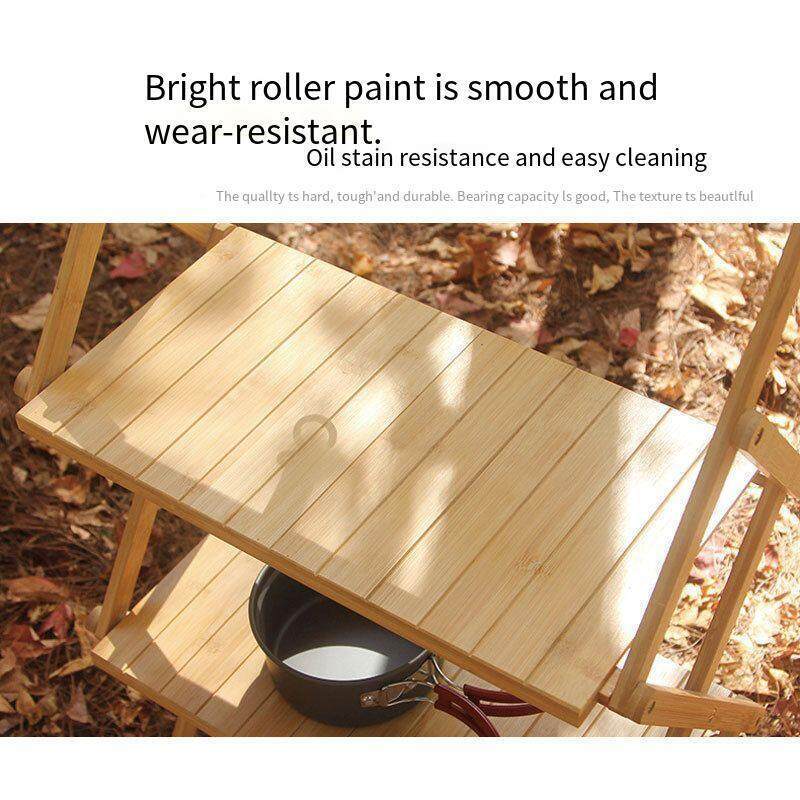 Outdoor Camping rack 4 Layer Foldable Wood Shelf Portable Picnic Cookware hanging rack Storage Rack