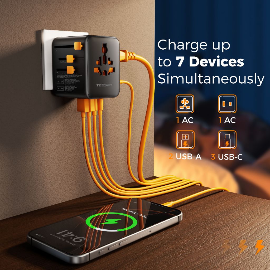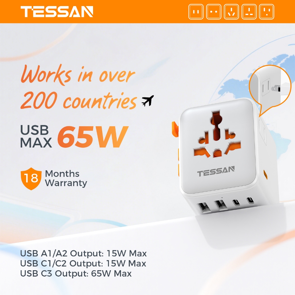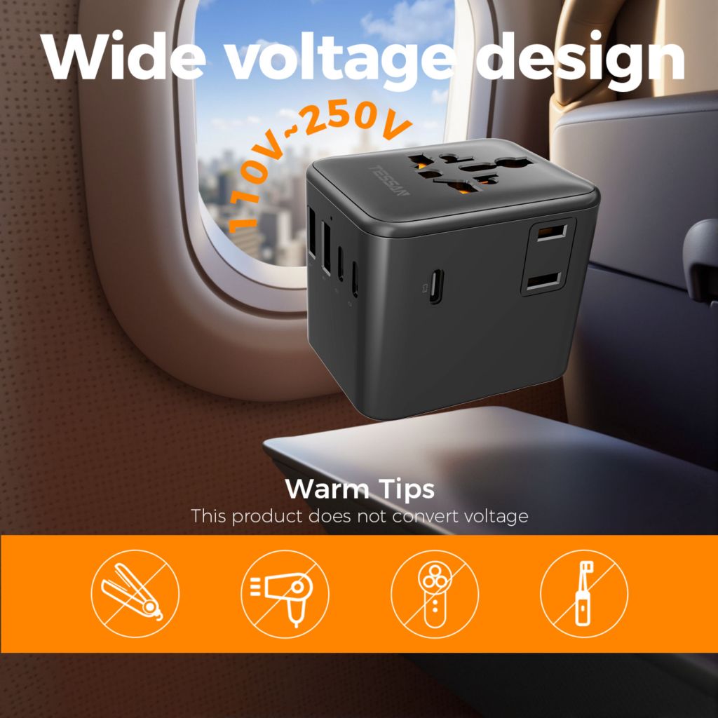 TESSAN International Travel Adaptor Plug with USB C Ports Universal Power Adapter Wall Charger