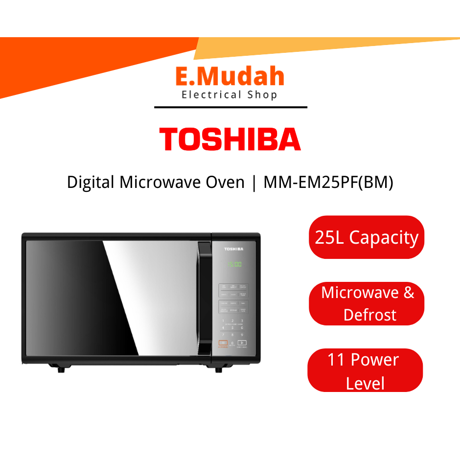 Toshiba Microwave Oven Grill Defrost Convection 20L/24L/25L/30L/34L | MWP-MM20P(WH) MW2-AG24PF(BK) MM-EM25PF(BM)