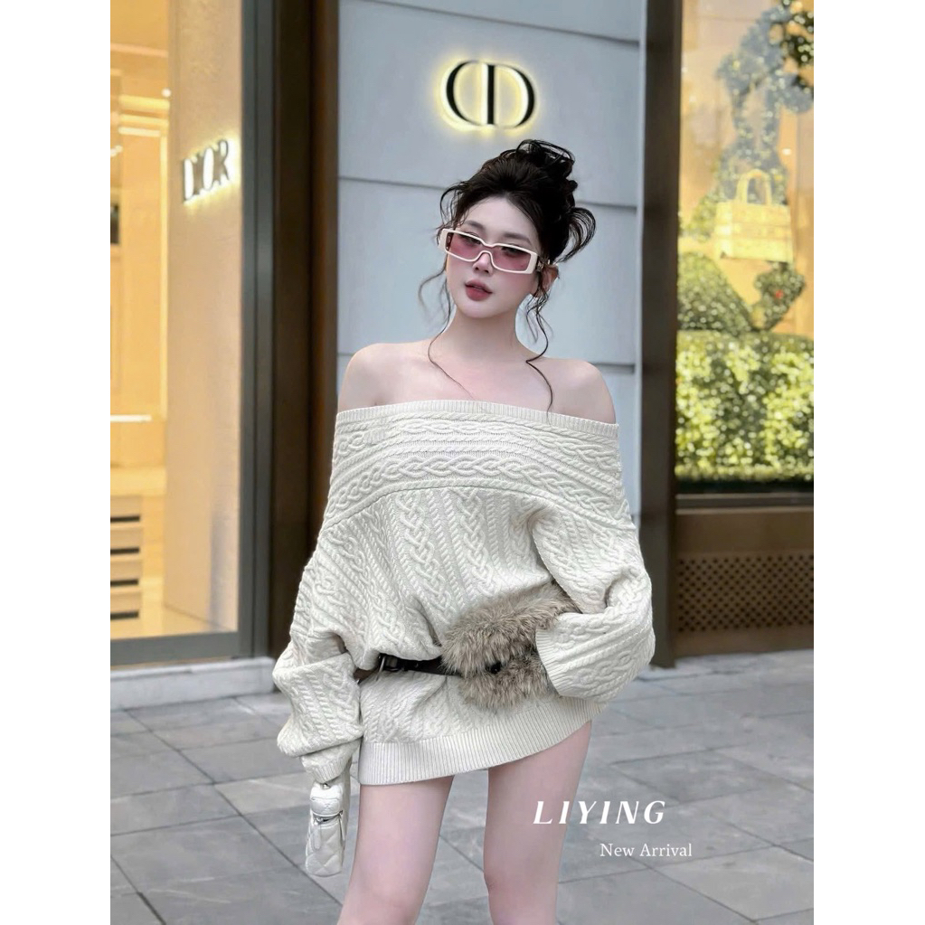 Bui Thi Thuong QC standard off-the-shoulder rope sweater Cardigan Woman Knitted Sweater