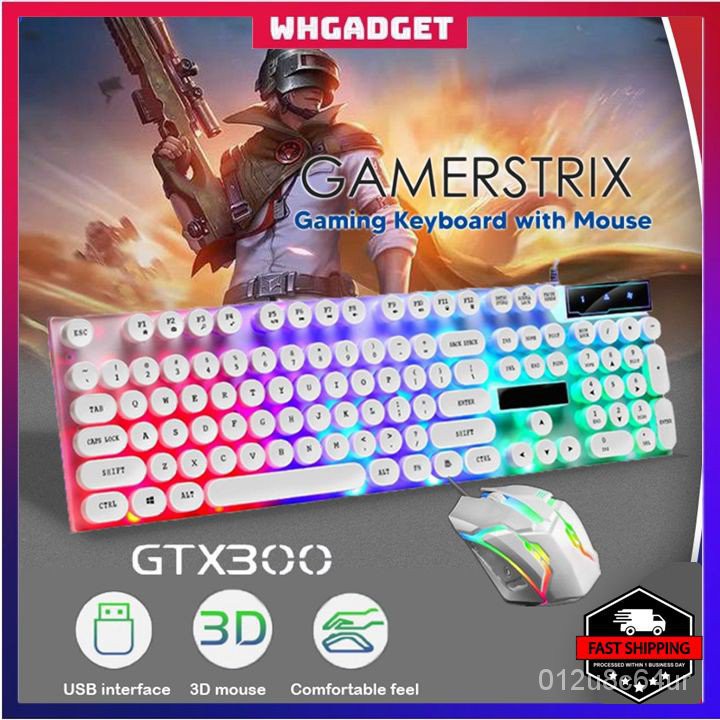 【READY STOCK)】(Ready Stock)GTX300 Set Gaming Keyboard And Mouse Office Computer Light Colourful Keypad Keyboard dan Teti