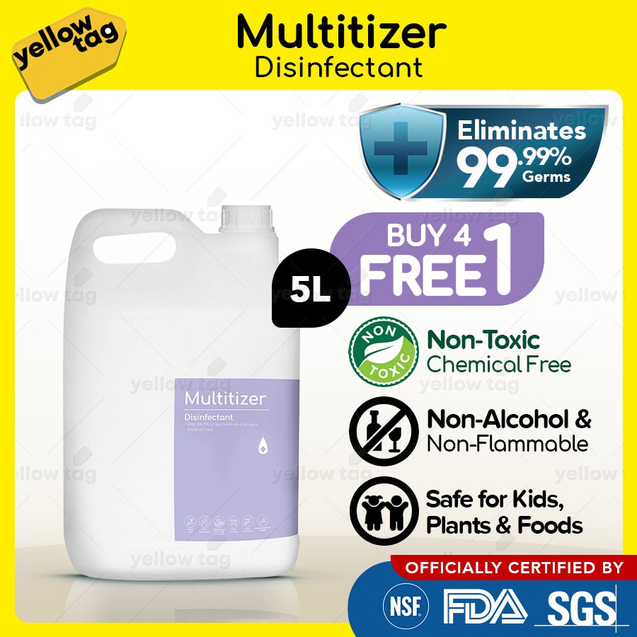 【READY STOCK)】[NON ALCOHOL] MULTITIZER 5L Disinfectant Surface Cleaner Dishwash Sanitizer Deodorizer Fogging Spray Sanit