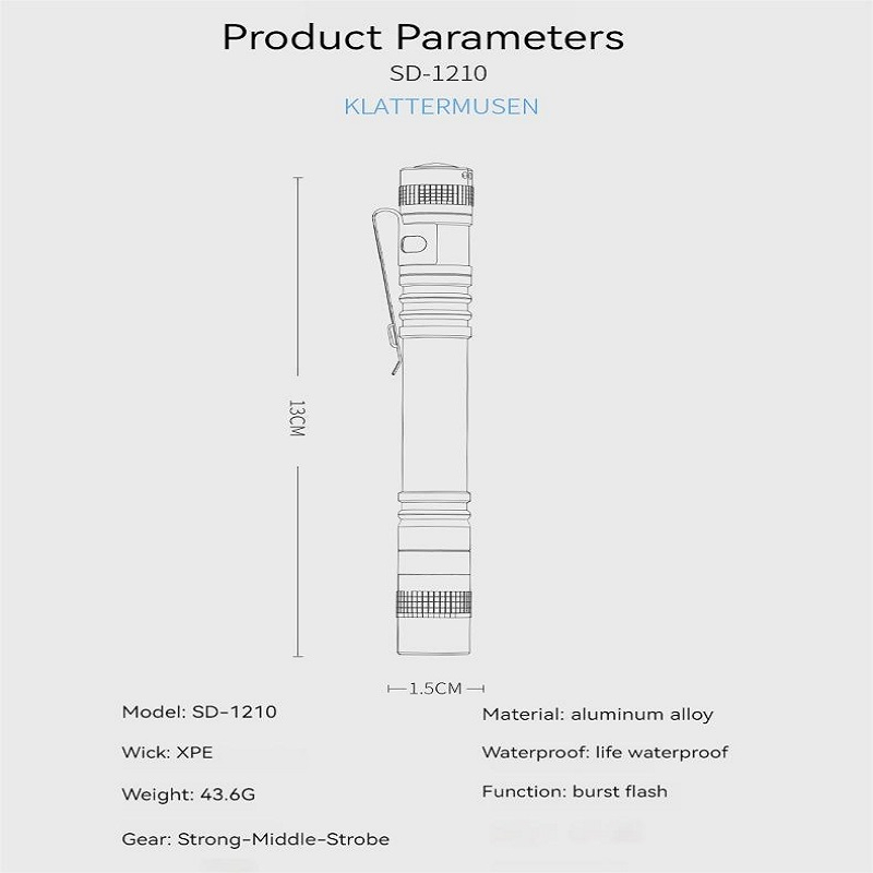 SmilingShark SD1210 LED Mini Torch light Super Bright XPE Flashlight with Pen Clip 3modes Zoomable Waterproof for Camping Hiking Household Gift