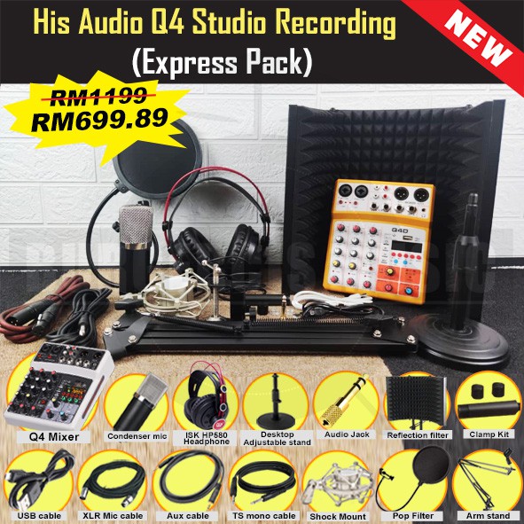 His Audio Q4 Studio Recording Professional Bundle Package (youtube, streaming, voiceover,song cover)