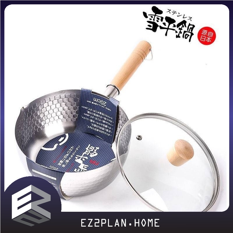 【READY STOCK】No-stick Stainless Steel 22cm Sauce Pan With Glass cover And Wooden Handle