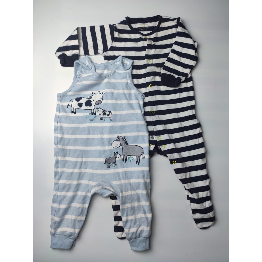 C0059 DEALS Bundle of 2 Pcs Preloved Baby Boy UK Brand Nutmeg Sleepsuit Dungaree 6-9 Months