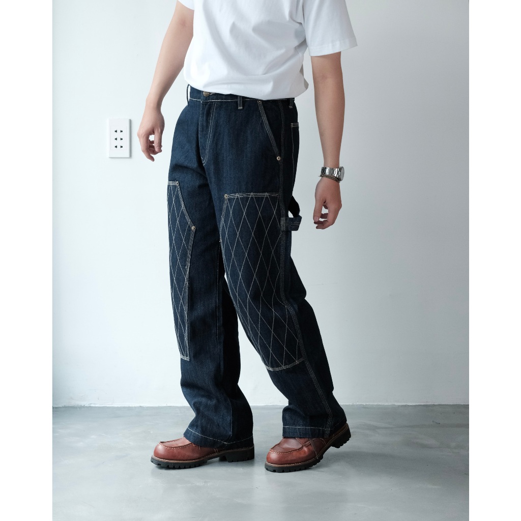 Double Knee Denim Embroidered Pants - WORKWEAR -Straight-fit style - Olderister