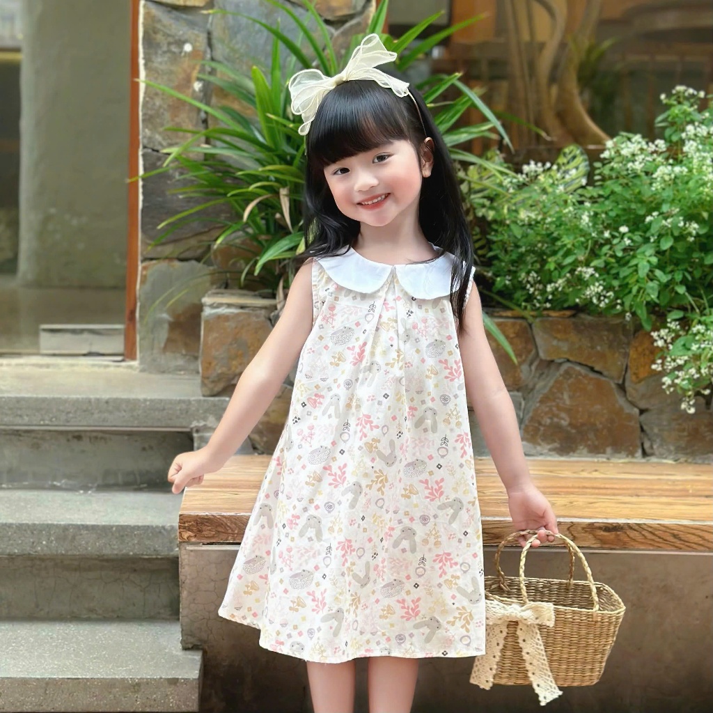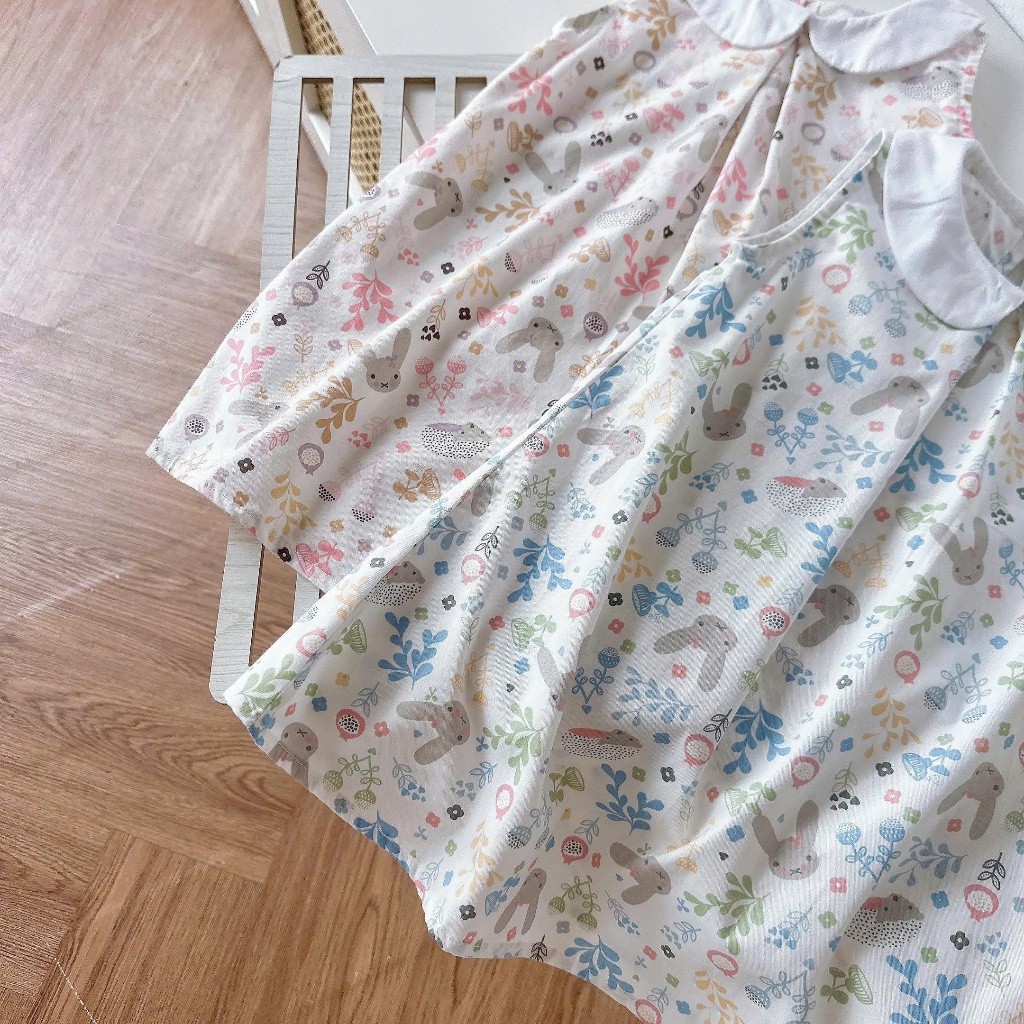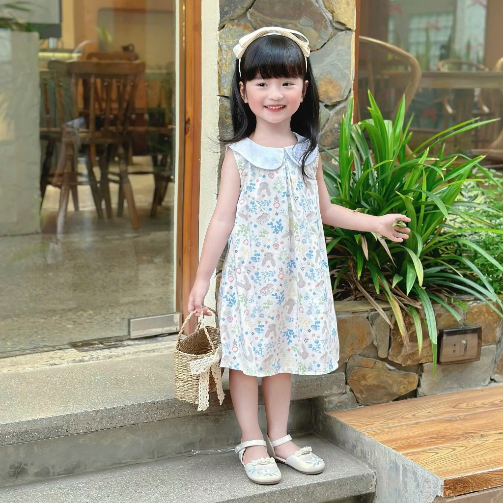 OPKids lotus neck silk dress with lovely rabbit and floral motifs for girls