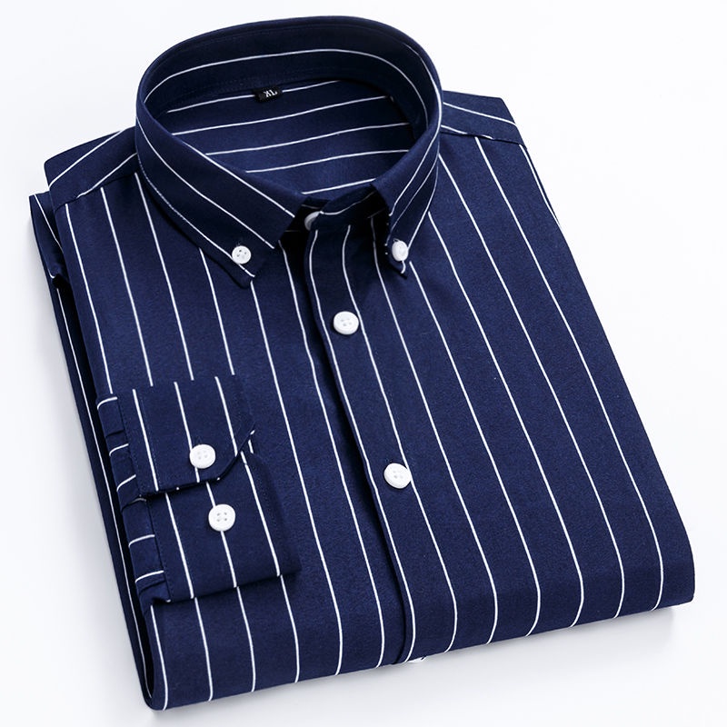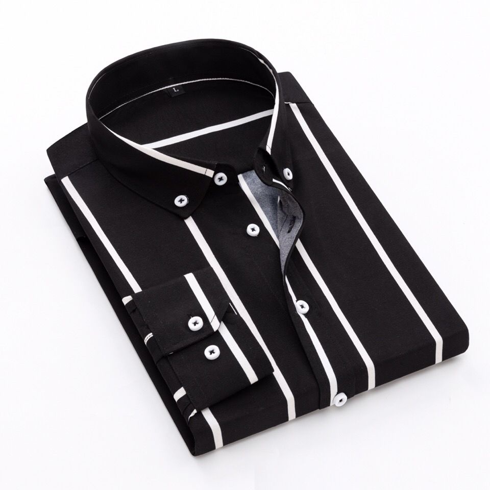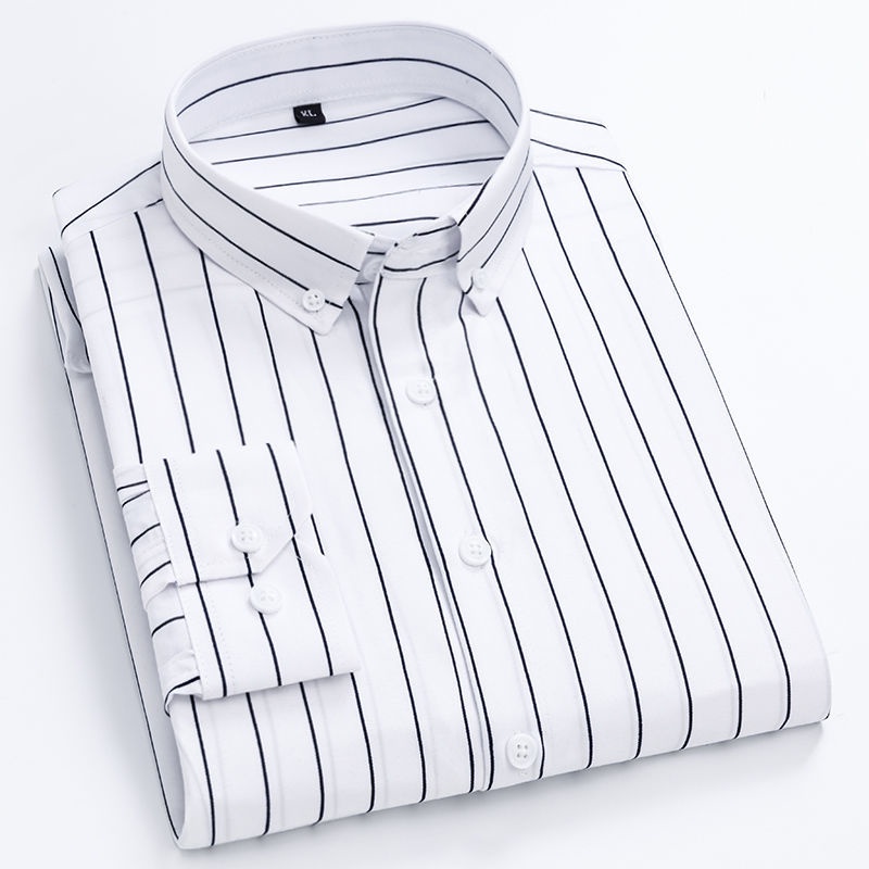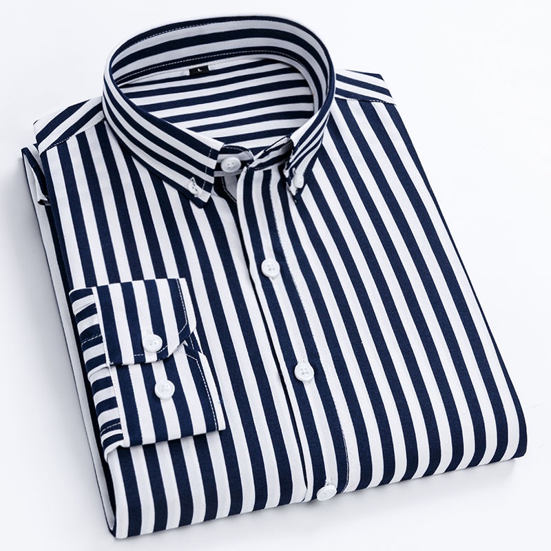【现货】新款长袖夏季薄款竖条纹衬衫中青年韩版修身发型师潮流衬衫eady Stock] New Style Long-Sleeved Summer Thin Vertical Striped Shirt Middle-Aged Young Korean Version