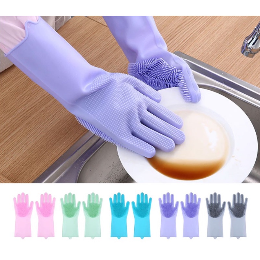 Magic Cleaning Gloves Latex Pvc Dishwashing Brush Rubber Glove Latek Sarung Tangan Cuci Pinggan Plastik Getah