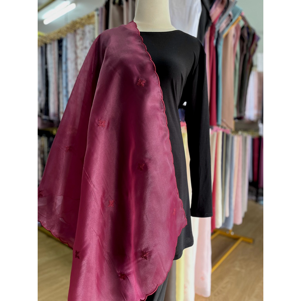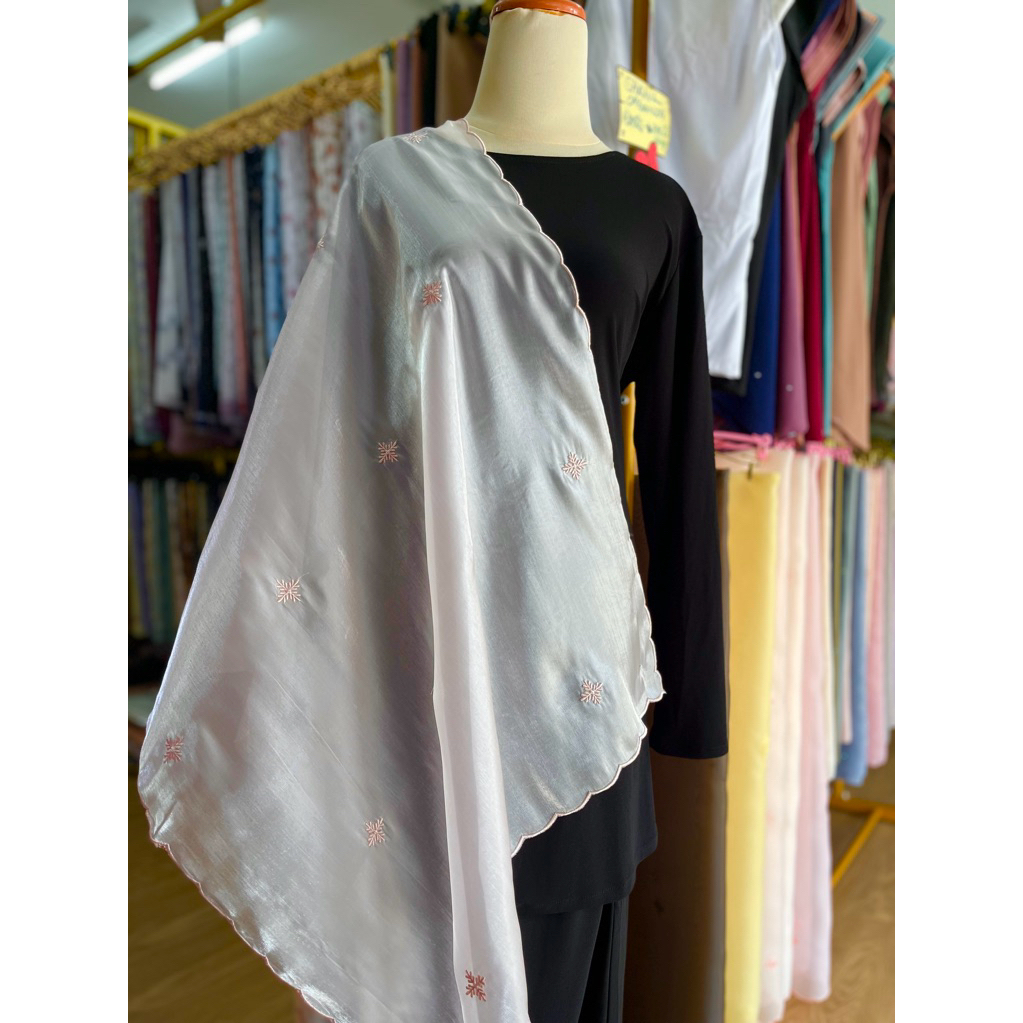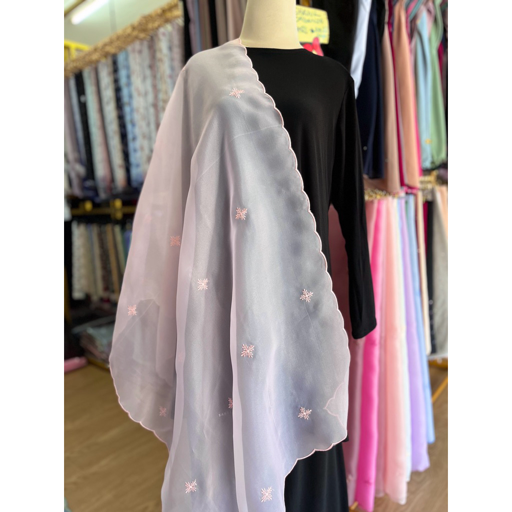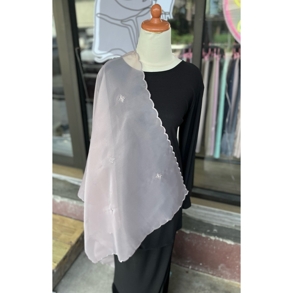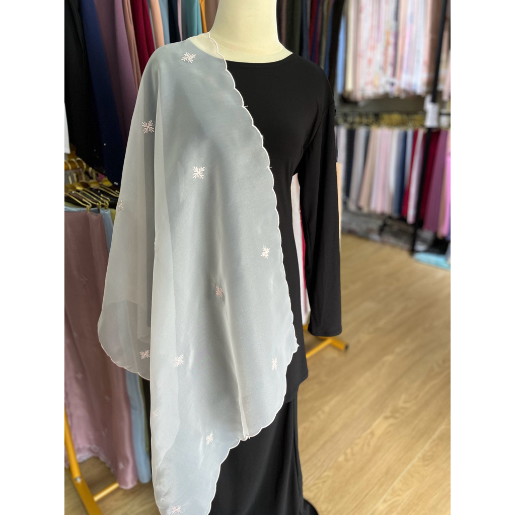 Shawl Organza Sulam Klasik Selendang Bahu Veil