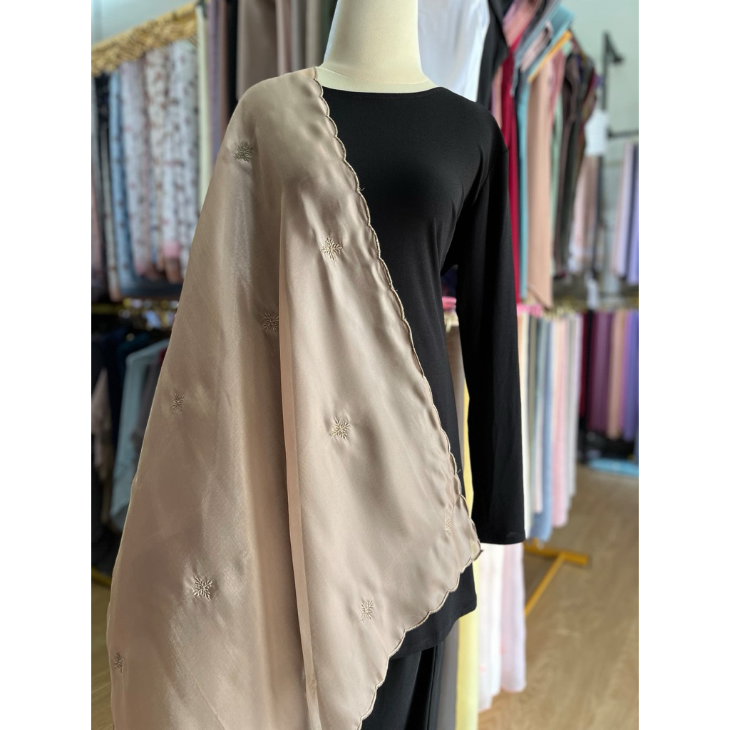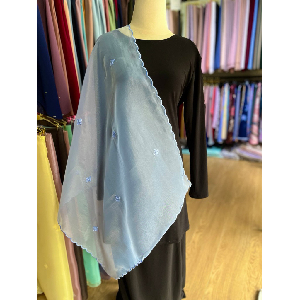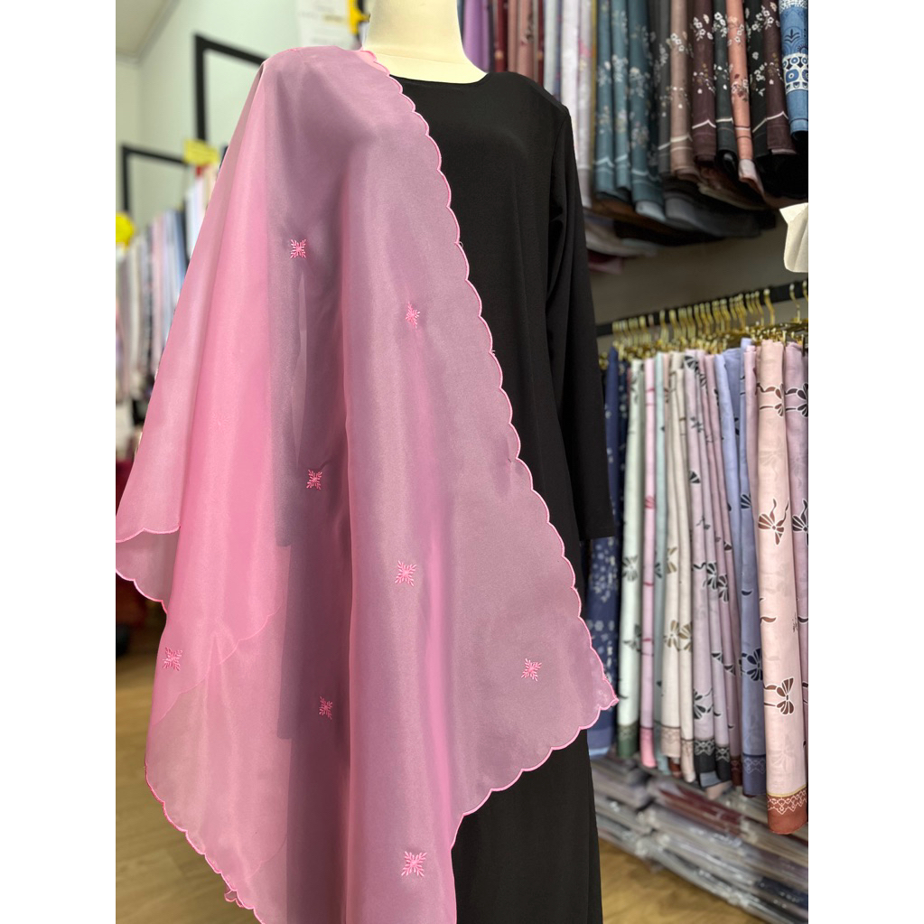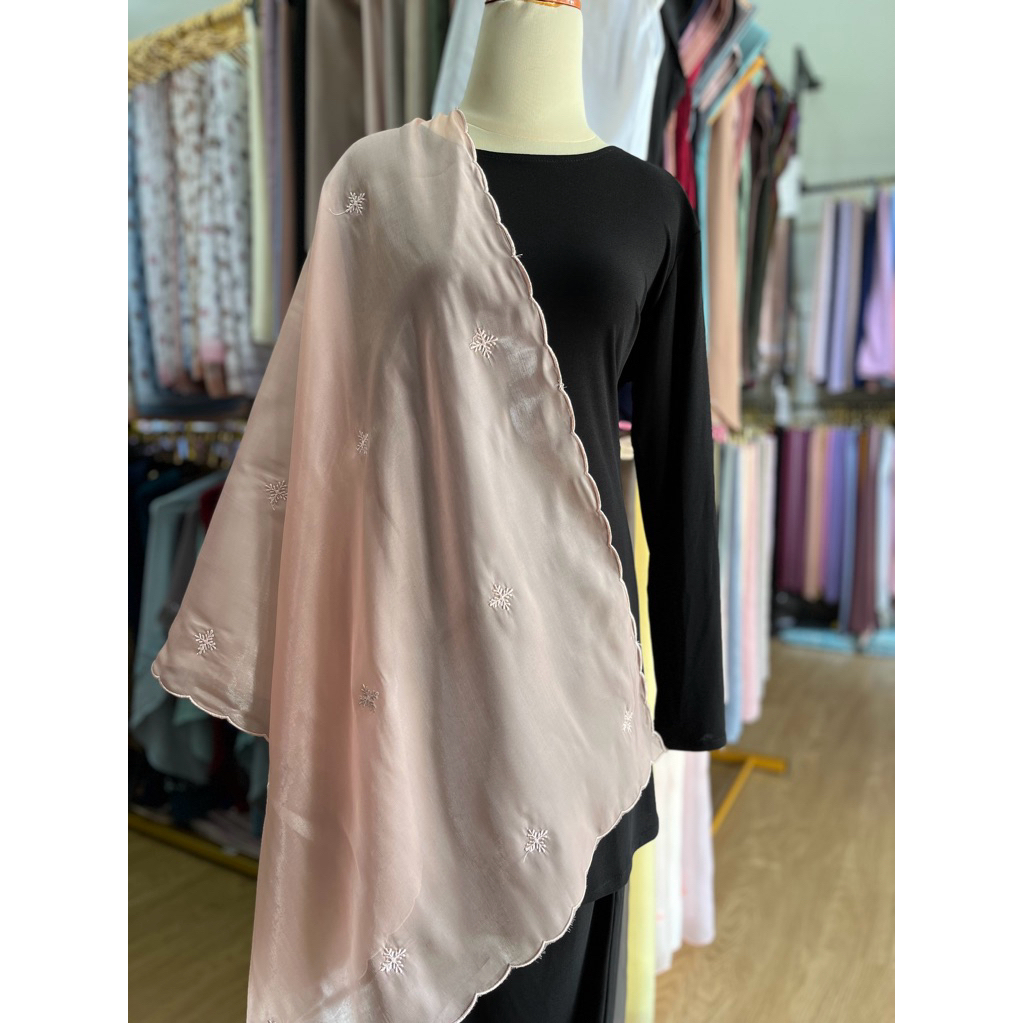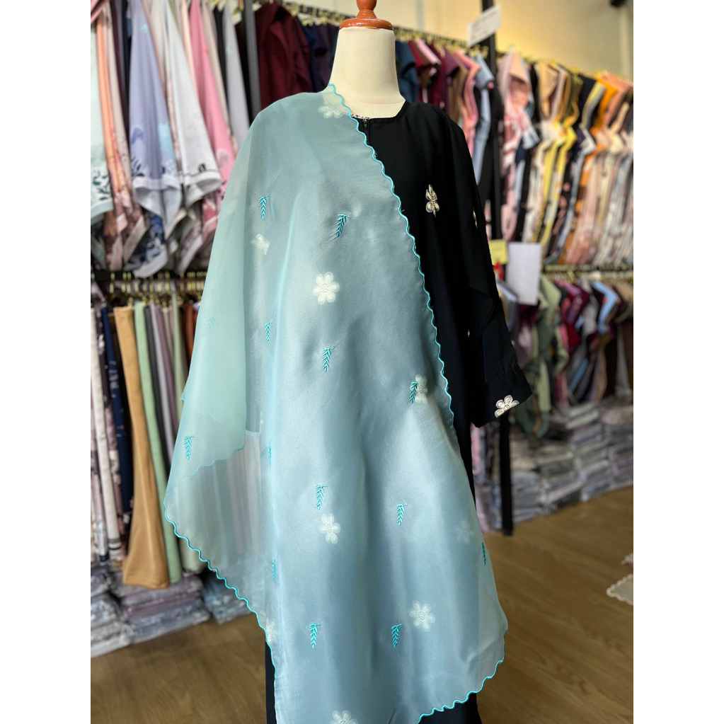 Shawl Organza Sulam Klasik Selendang Bahu Veil