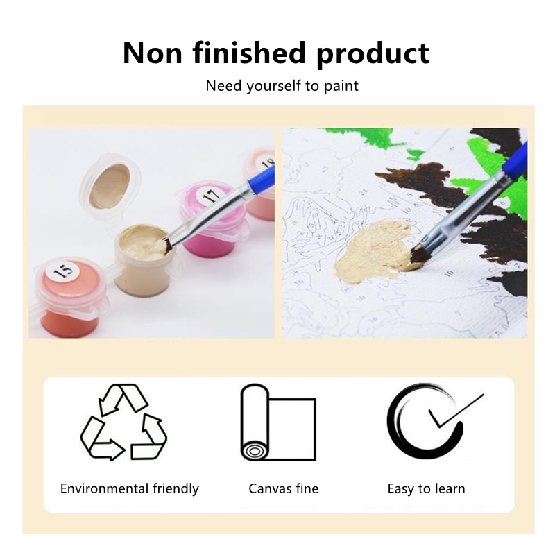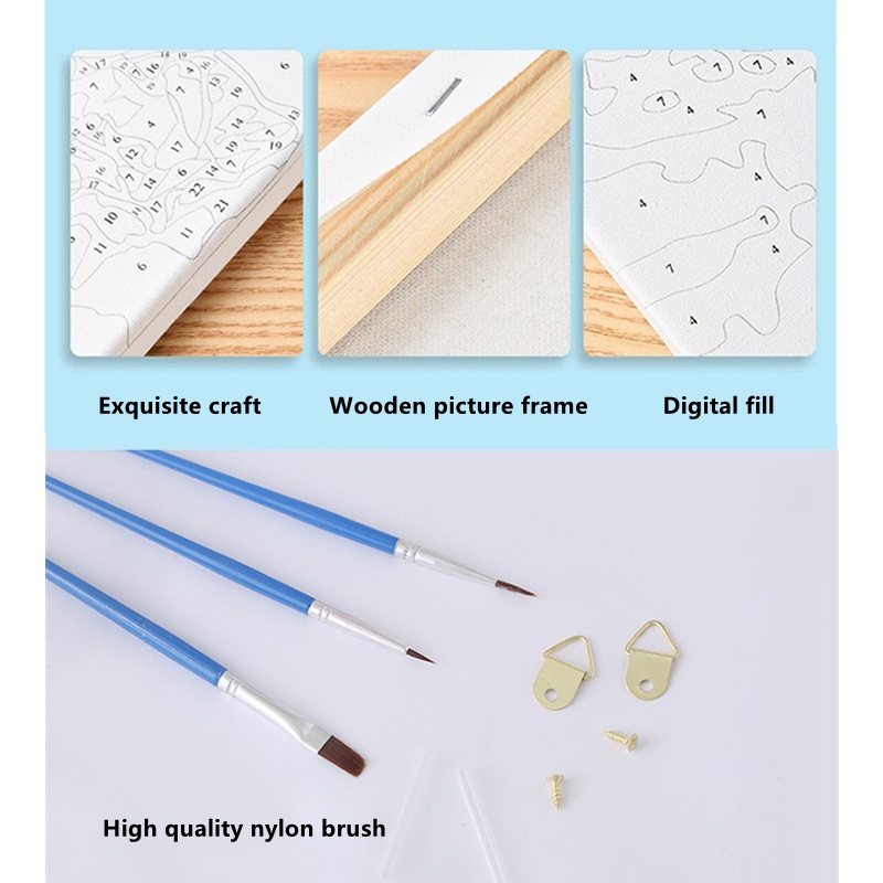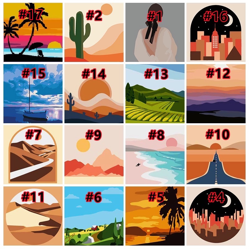 Paint by Number with Frame 20x20cm DIY Oil Painting Canvas for Child Kids Beginners Sunset Scenery Decorative Lukisan