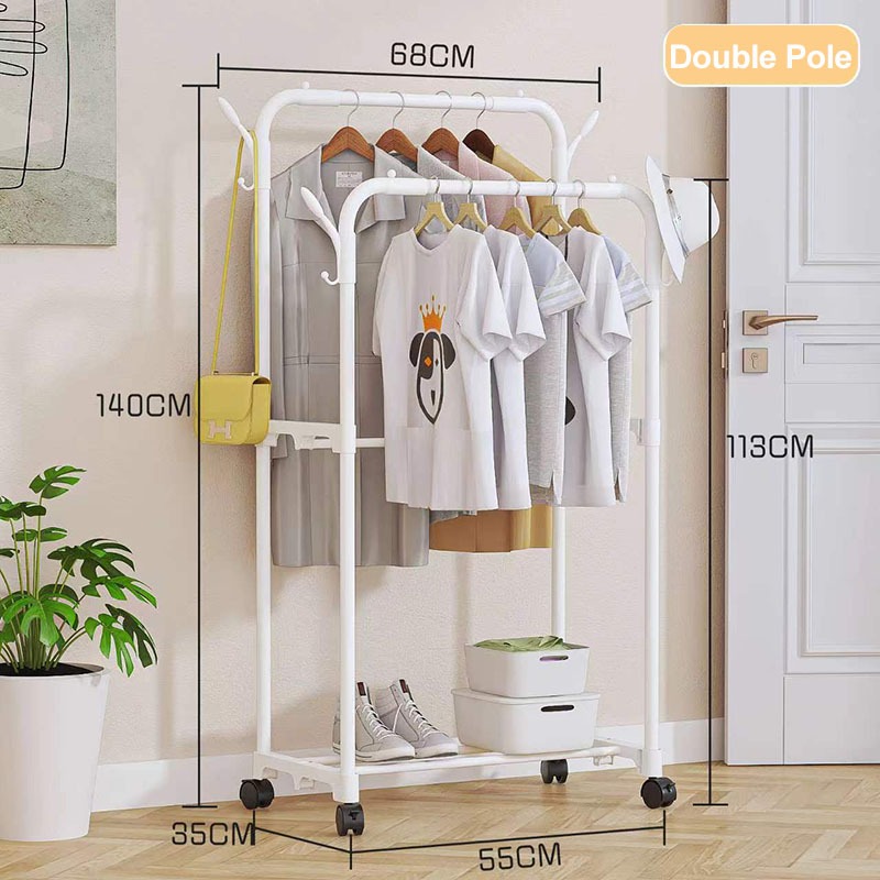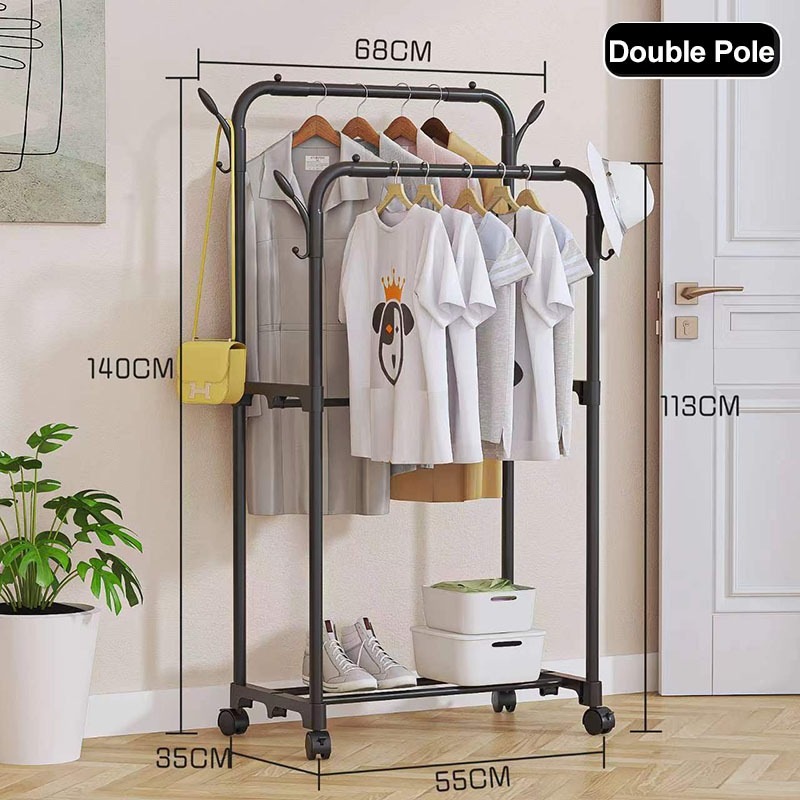 Single/Double-Pole Clothes Hanging Rack Cloth Hanger Stand Drying Rak Pengering Pakaian Gantung Baju