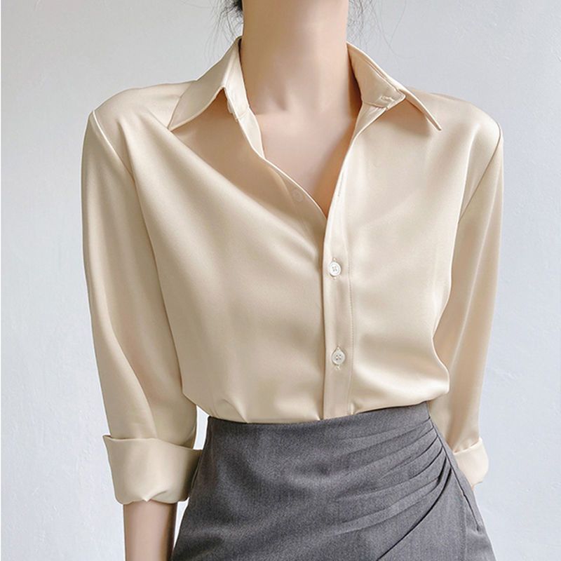 Women Satin Pian Blouse Long Sleeve Casual/Formal Kemeja Perempuan Office Lady Tops
