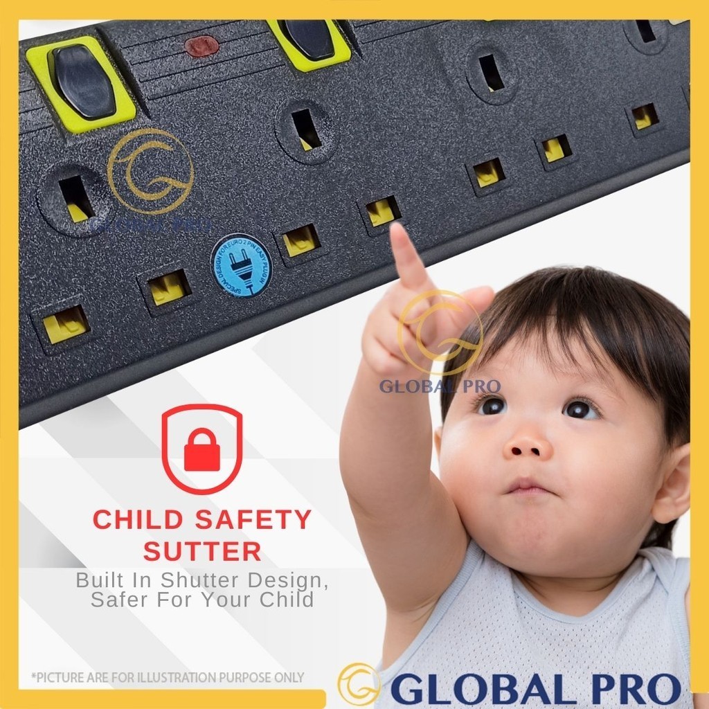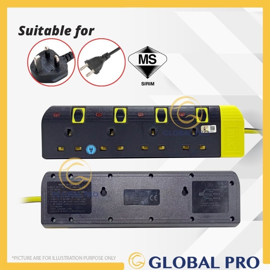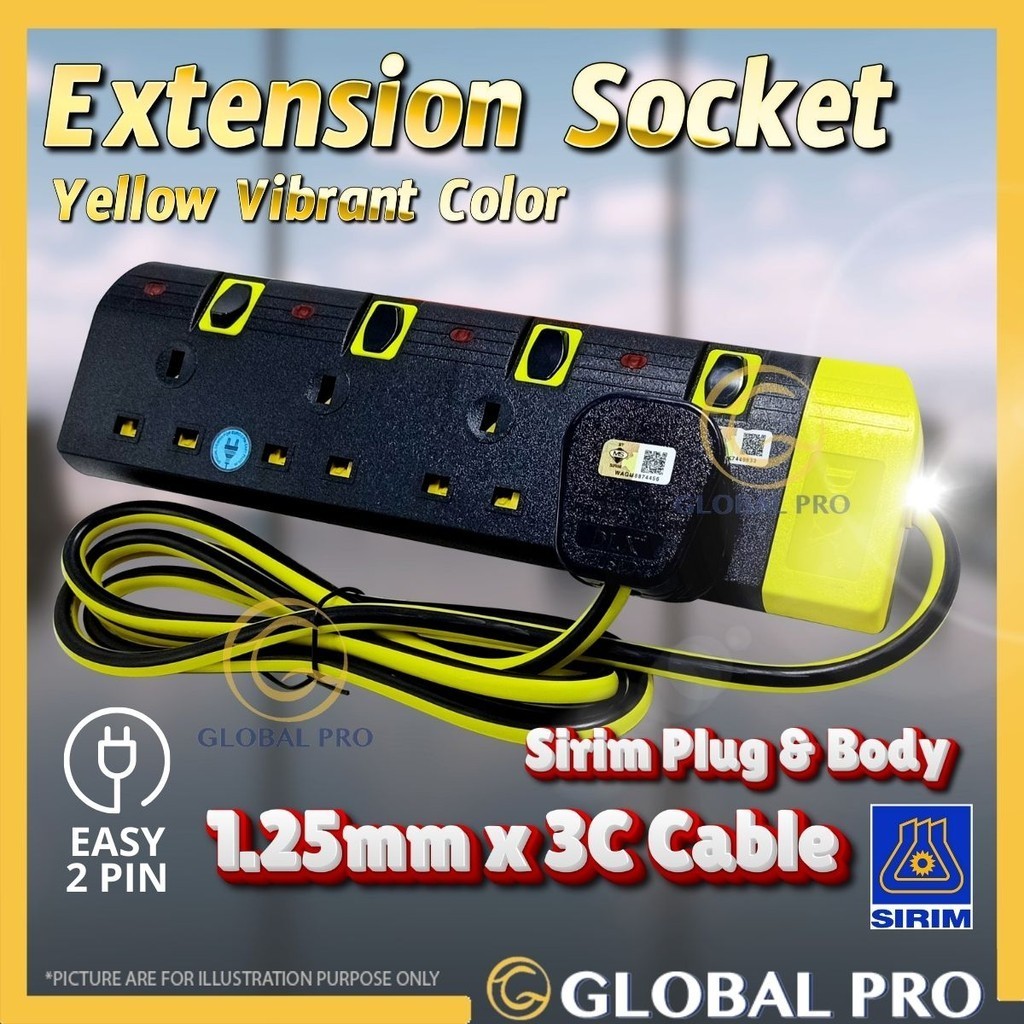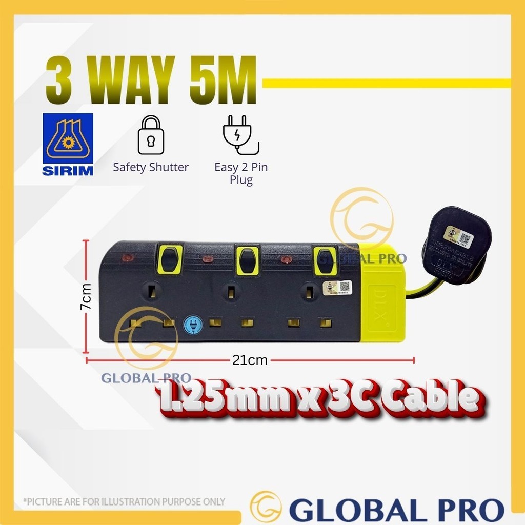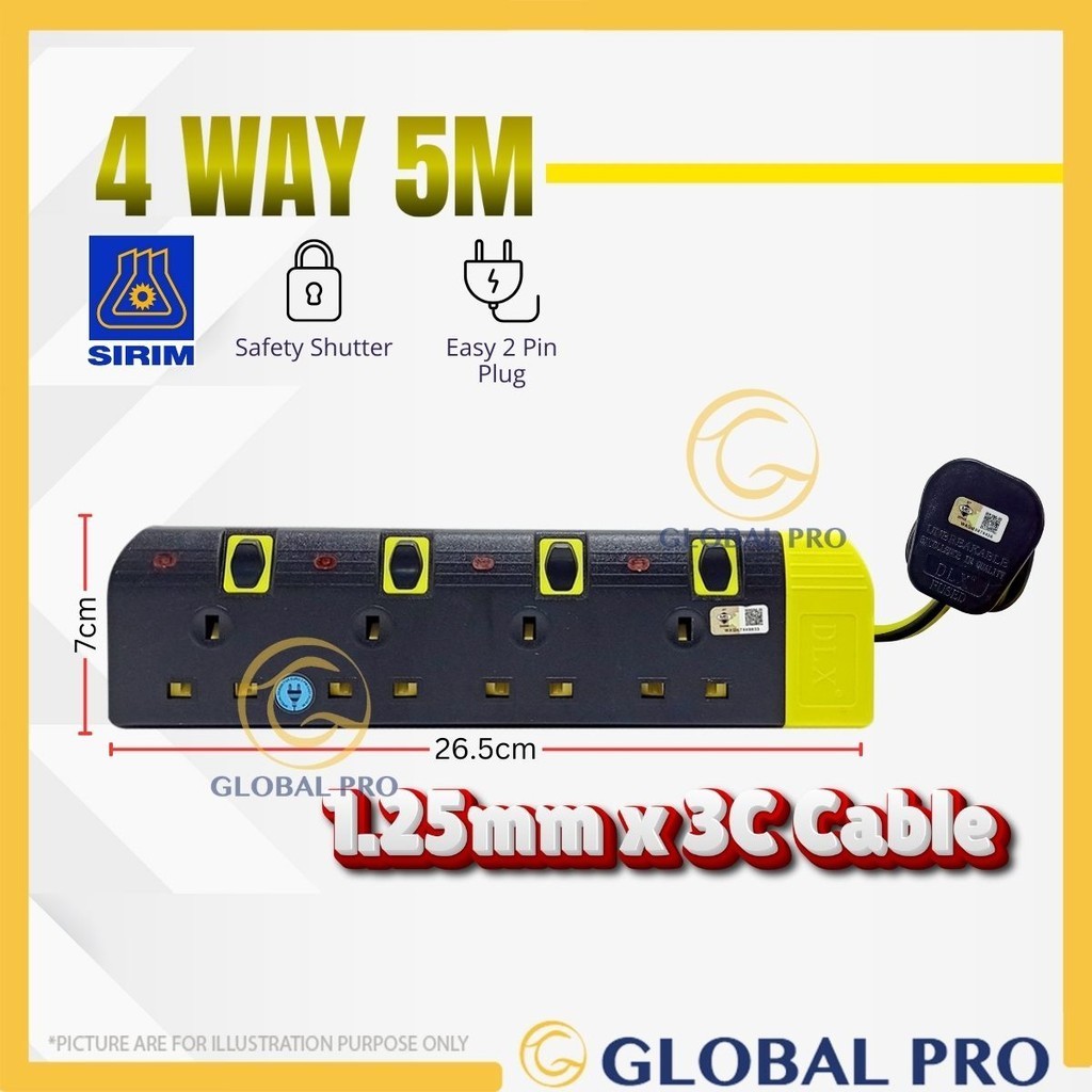 [SIRIM] DLX 2 / 5MTR Yellow Black Portable Extension Trailing Socket Extension Plug Adapters Extantion 1.25MM X 3C Cable