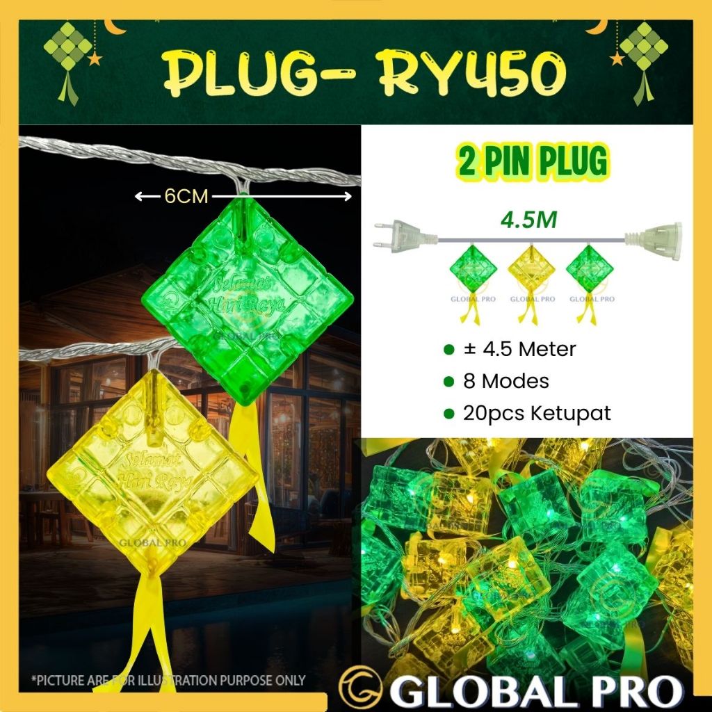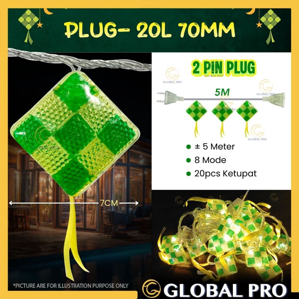 SOLAR/PLUG Lampu Ketupat Lampu Solar Outdoor Waterproof Raya 2026 Aidilfitri Lampu Raya Viral Kelip Raya Lampu Lip Lap