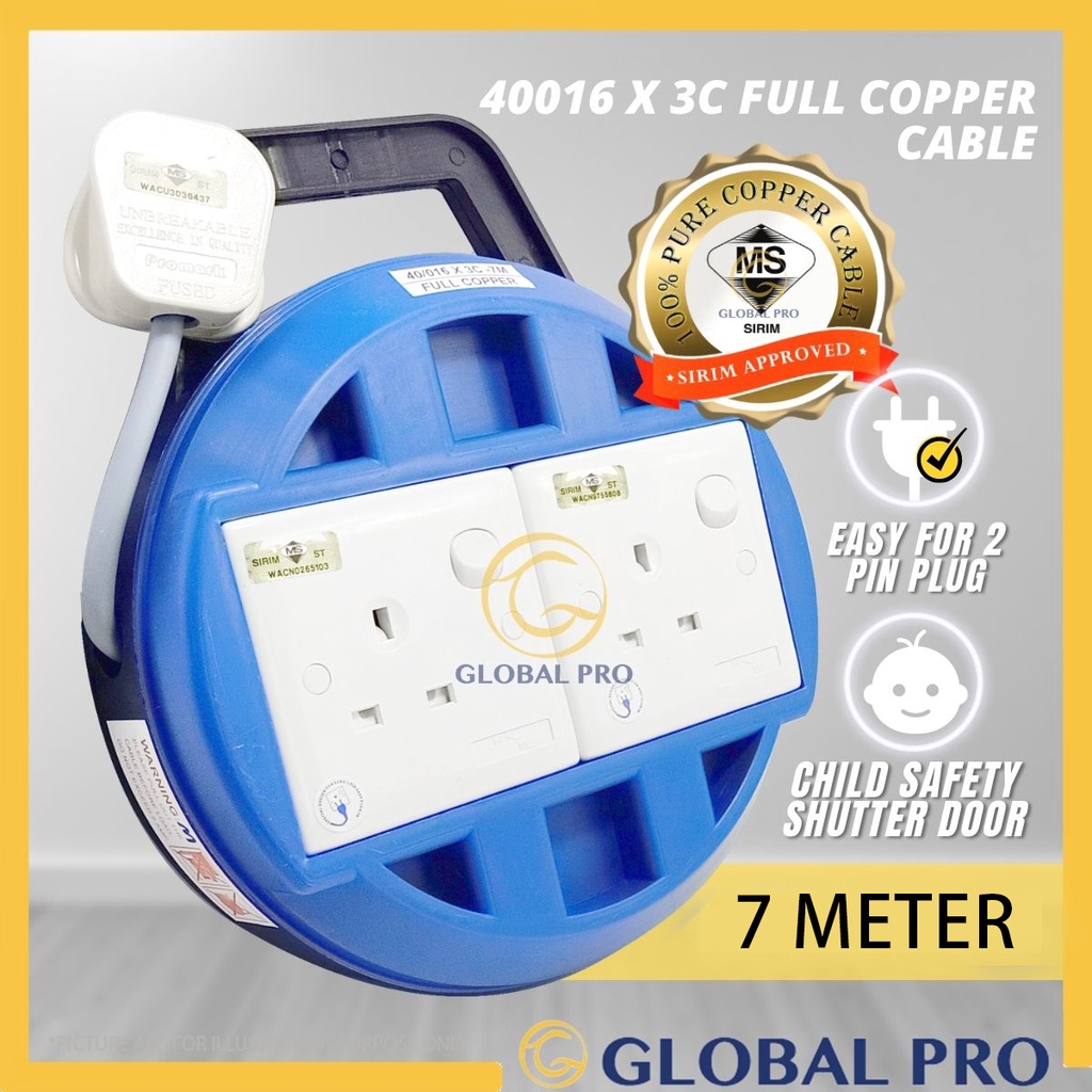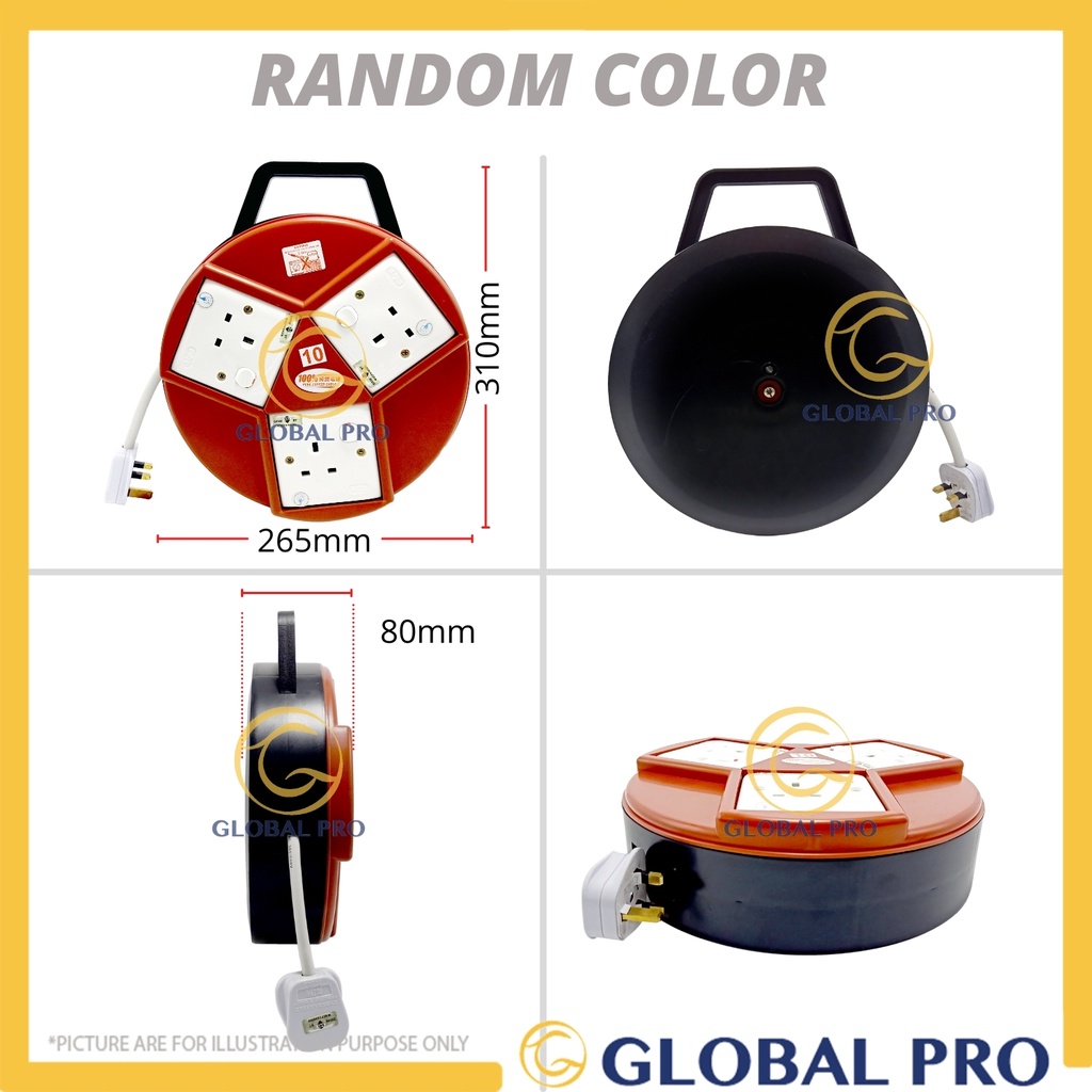 [SIRIM] Heavy Duty 7M/ 10M Full Copper 2 /3WAY Extension Box Cable Reel Socket Portable Trailing Sock Extension Plug