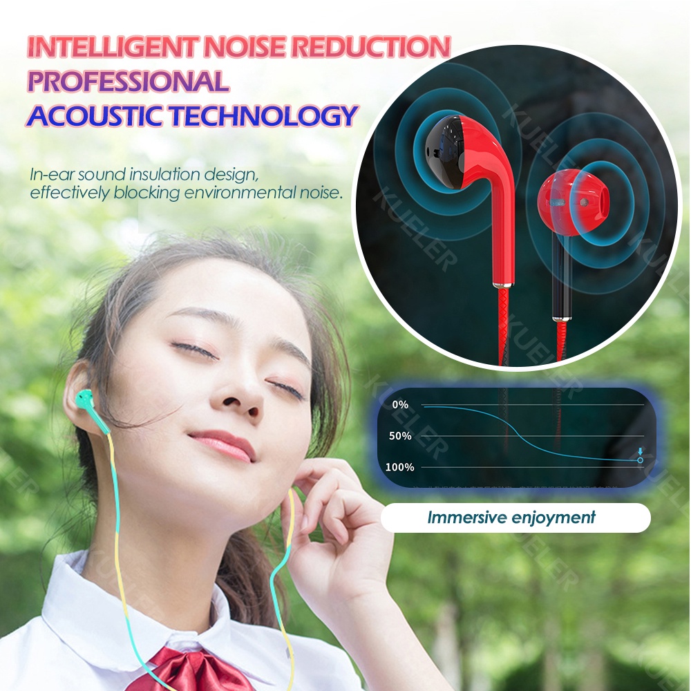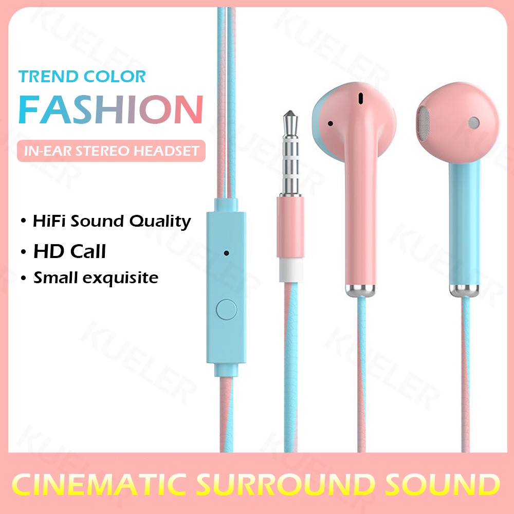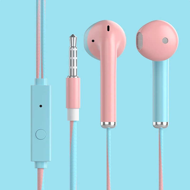 [Malaysia Ship] New Style Color Block Earphone In Ear Wired Earphones 3.5mm Stereo Headphone with Microphone Headset 有线耳机