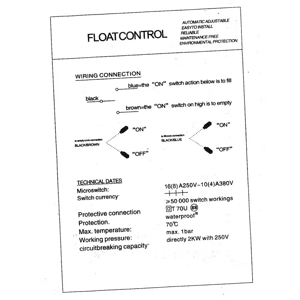 3H 2M/5M/8M/10M Float Switch / Water Level Switch Control Switch