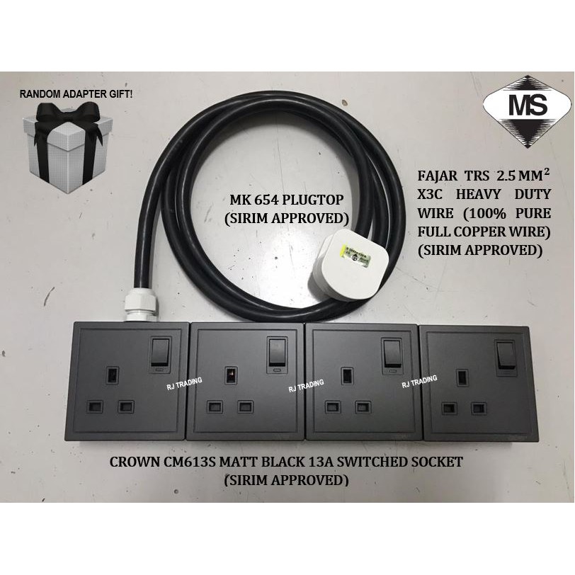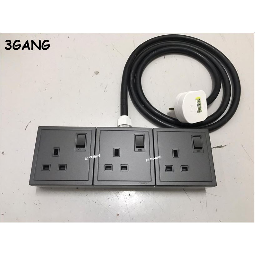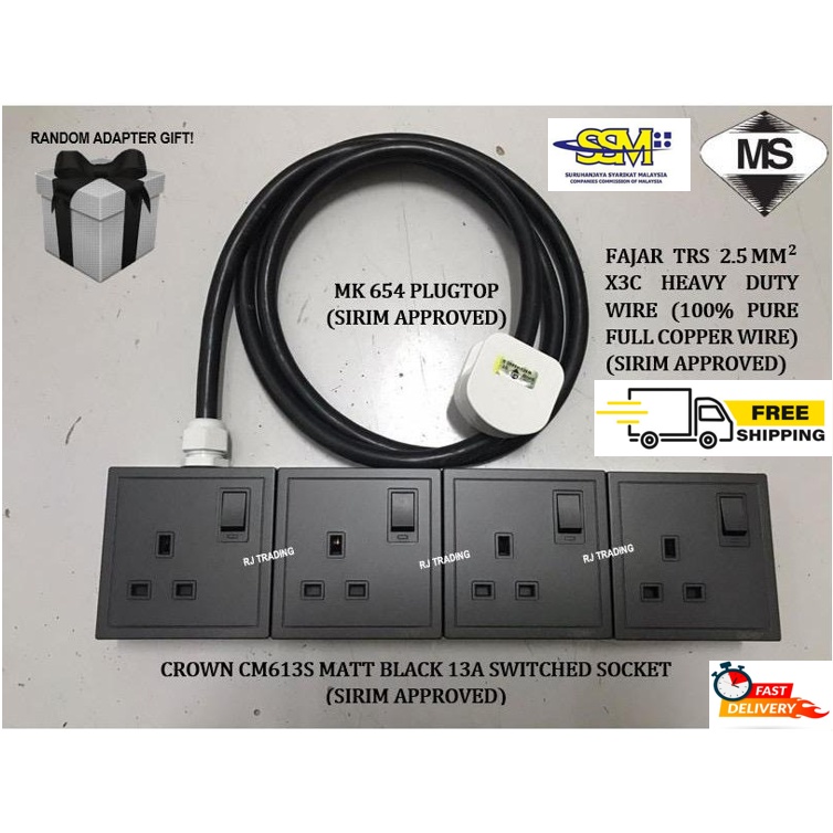 (READY STOCK) HEAVY DUTY 1/2/3/4 WAYS EXTENSION WIRE CROWN CM613S MATT BLACK 13A S/S FAJAR TRS 2.5MM