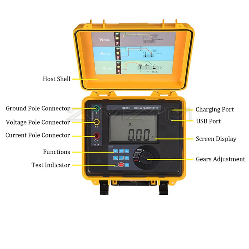 ETCR3000C Digital Earth Ground Resistance Voltage Meter 0.01Ω-2000Ω Earth Impedance Tester Rechargeable Lithium Battery