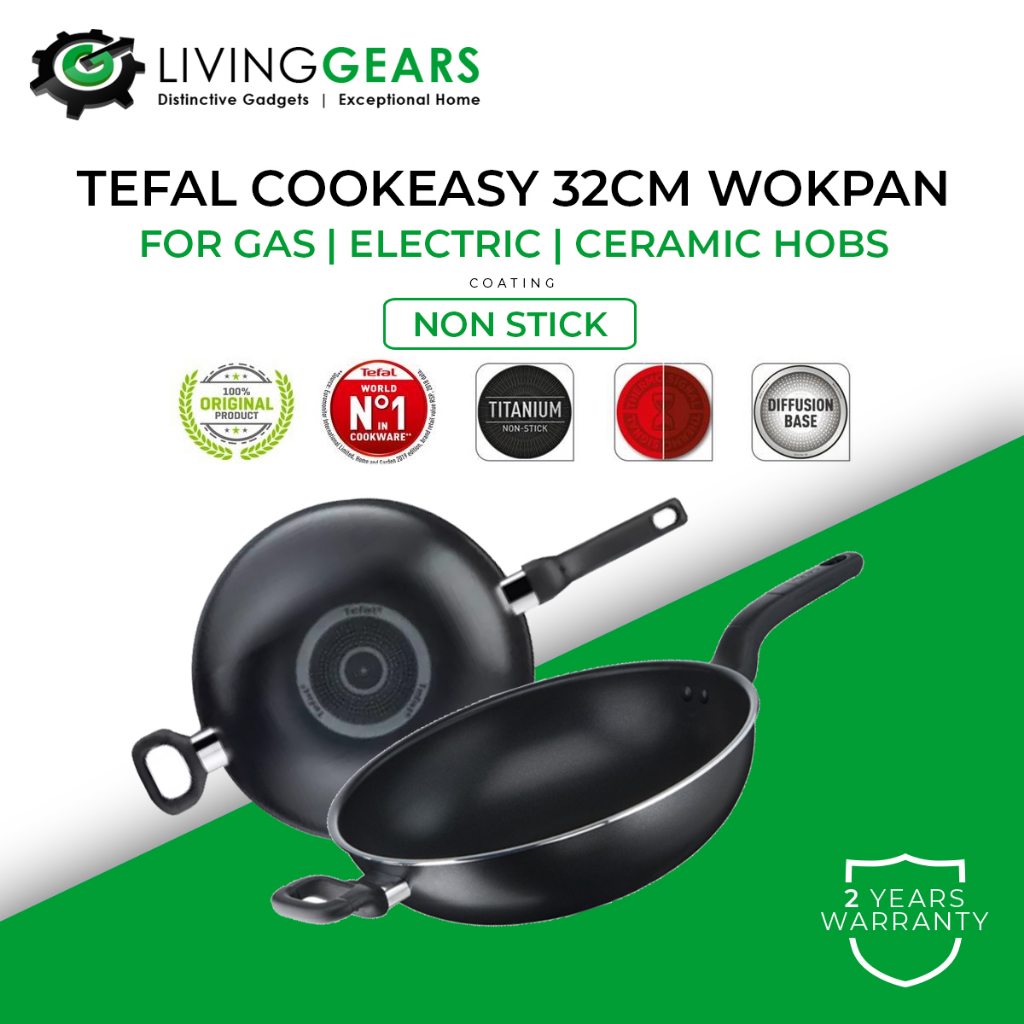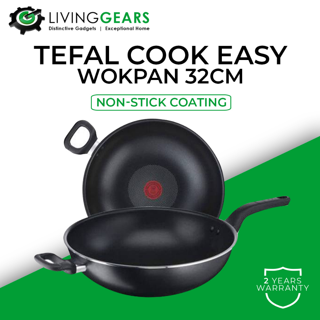 Tefal 32cm Wokpan Non-Stick Cook Easy Black / Glass Lid B50389