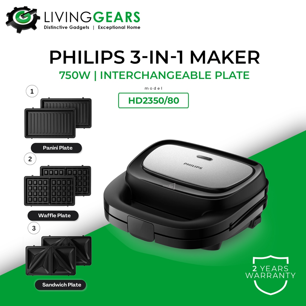 Philips 3 in 1 Interchangeable Plate Maker Panini / Waffle / Sandwich 750W HD2350 / HD2330