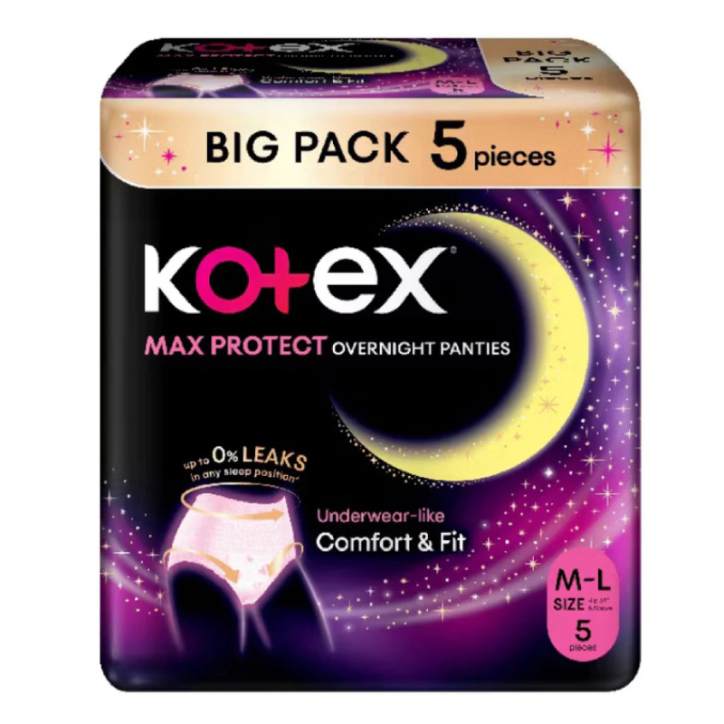 KOTEX Overnight Panties M-L (5s) & L-XL (5s) - Period Panties with 360⁰ Anti-Leakage Protection Disposable