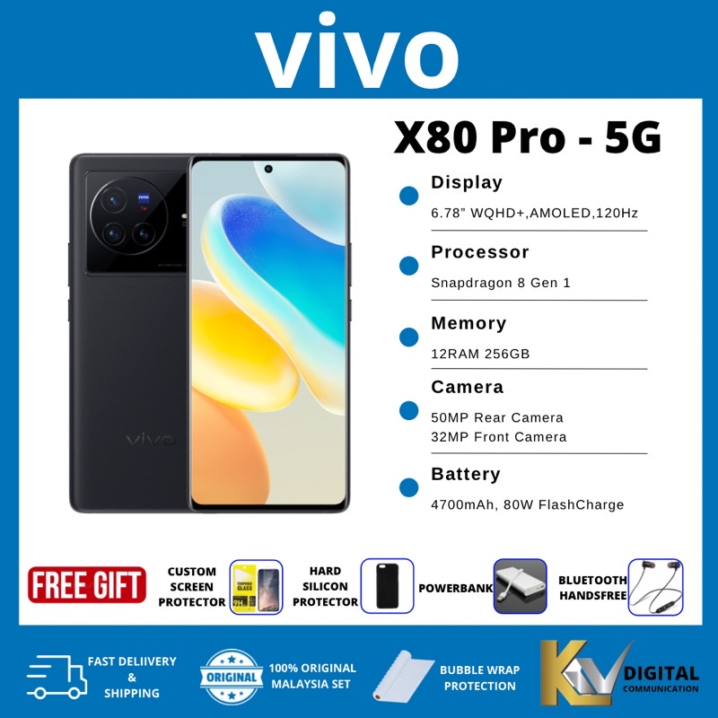 [New] Pre Order 08-13 May vivo X80 Pro | 16GB RAM + 256GB ROM| Zeiss Optic |vivo X80 5G (12GB+256GB) (ETA:14 May 2022)