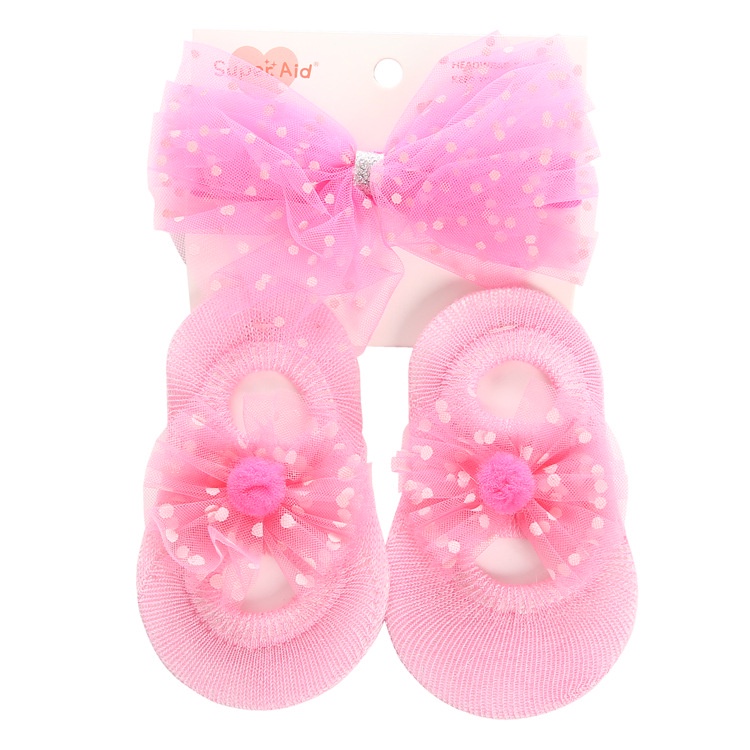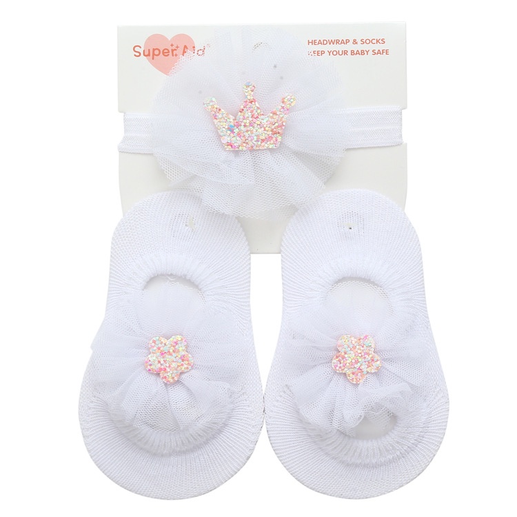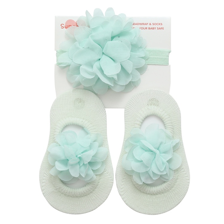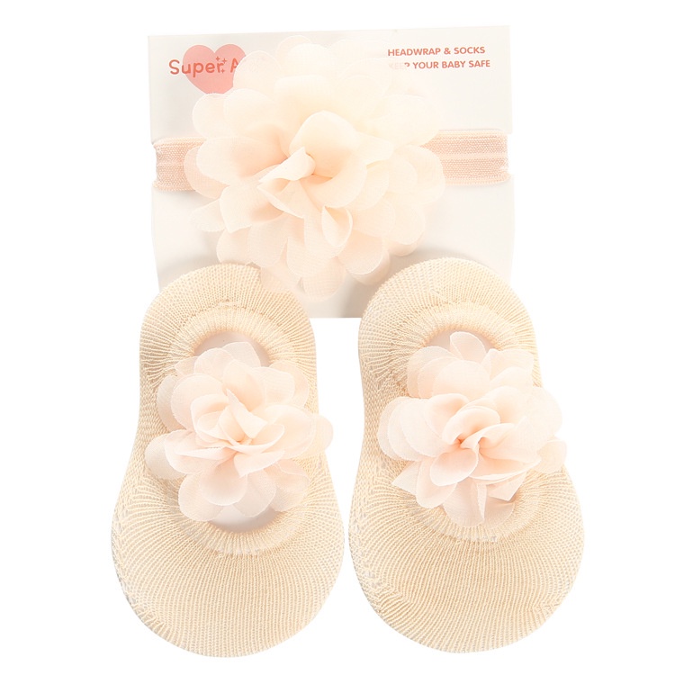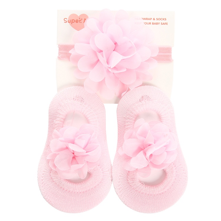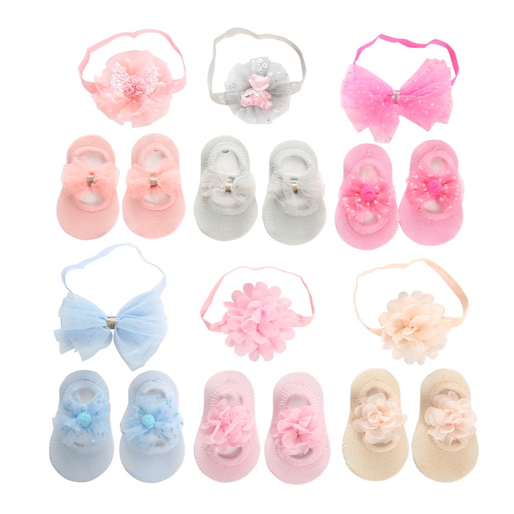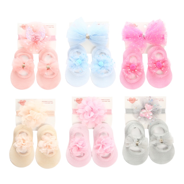 Baby Socks And Headband Set Lovely Flowers Decorated Anti-Slip Cotton Ankle Socks With Elastic Hair Band QY109