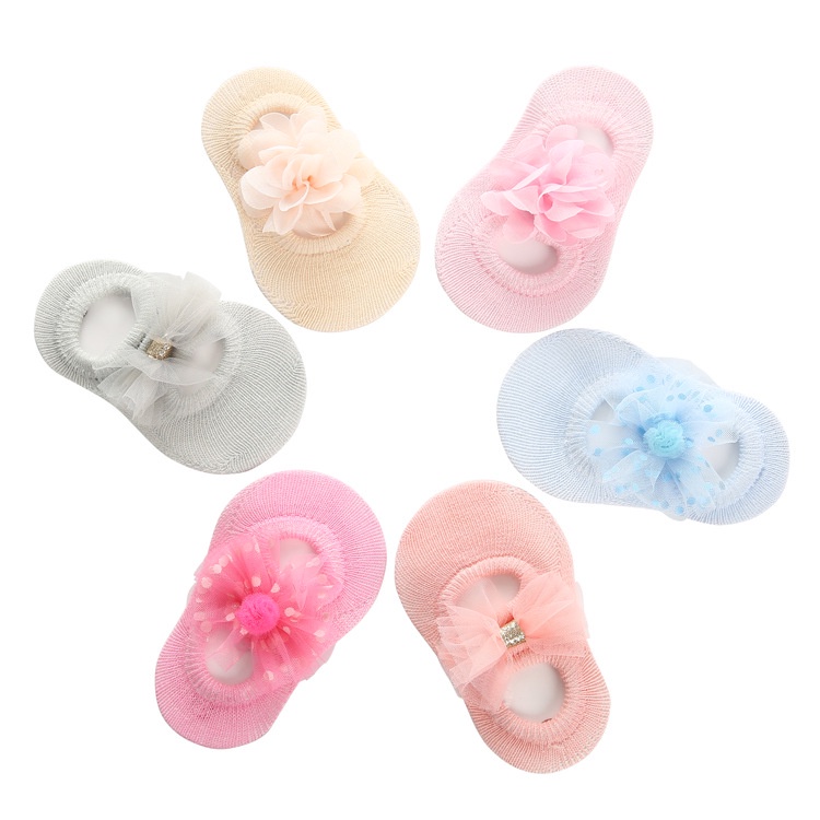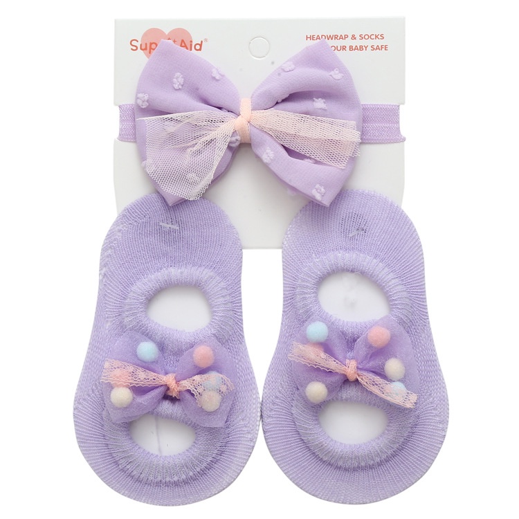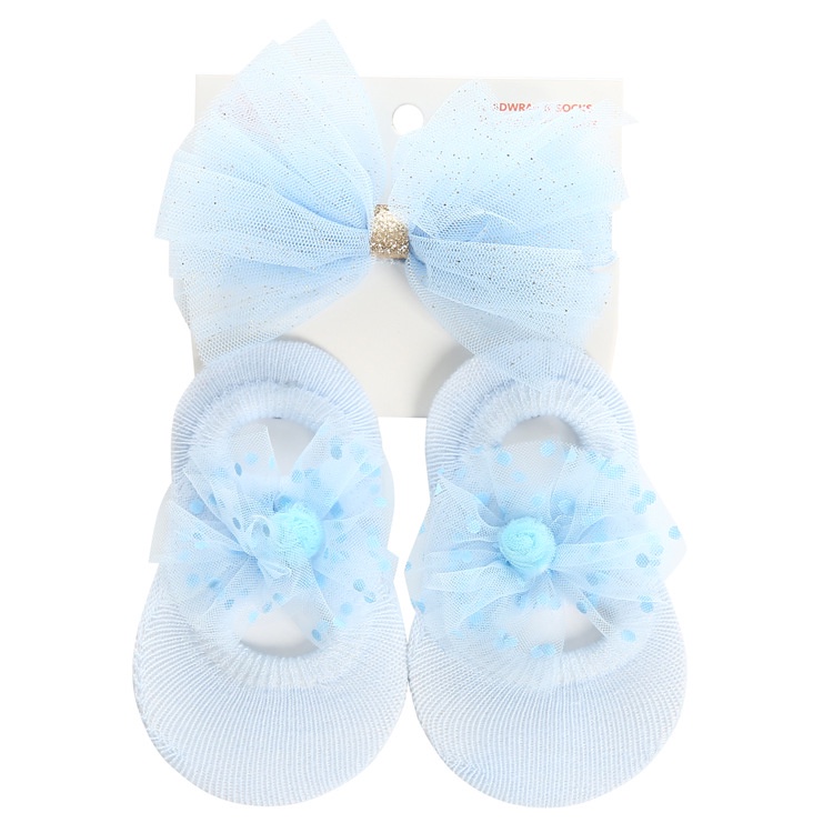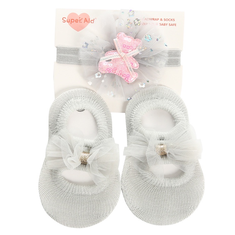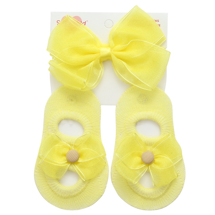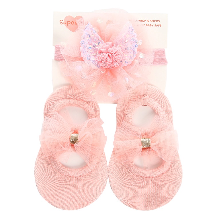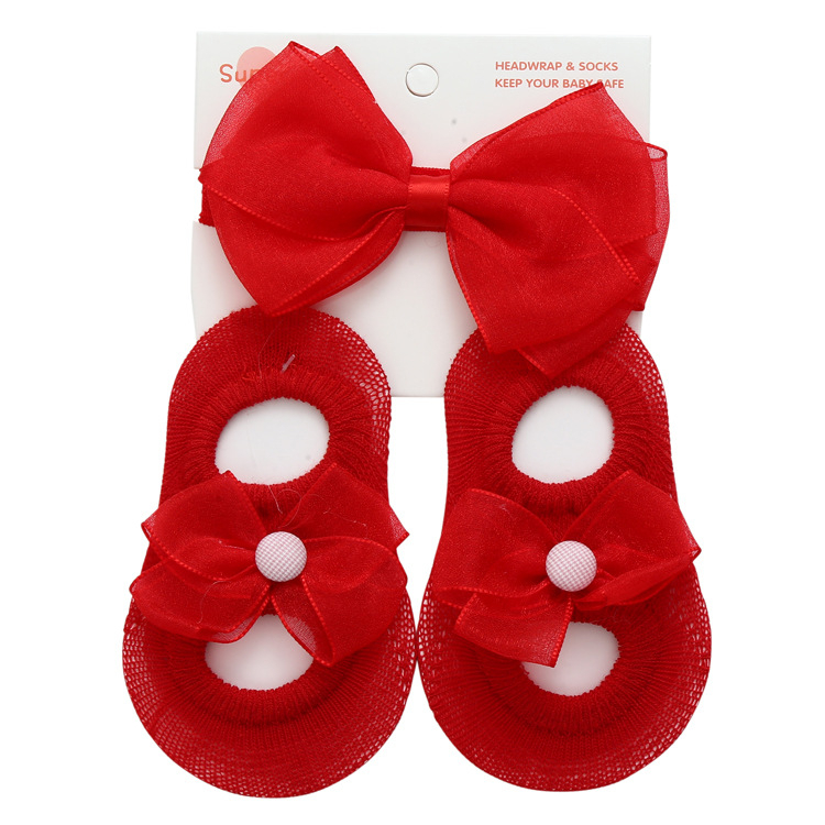 Baby Socks And Headband Set Lovely Flowers Decorated Anti-Slip Cotton Ankle Socks With Elastic Hair Band QY109