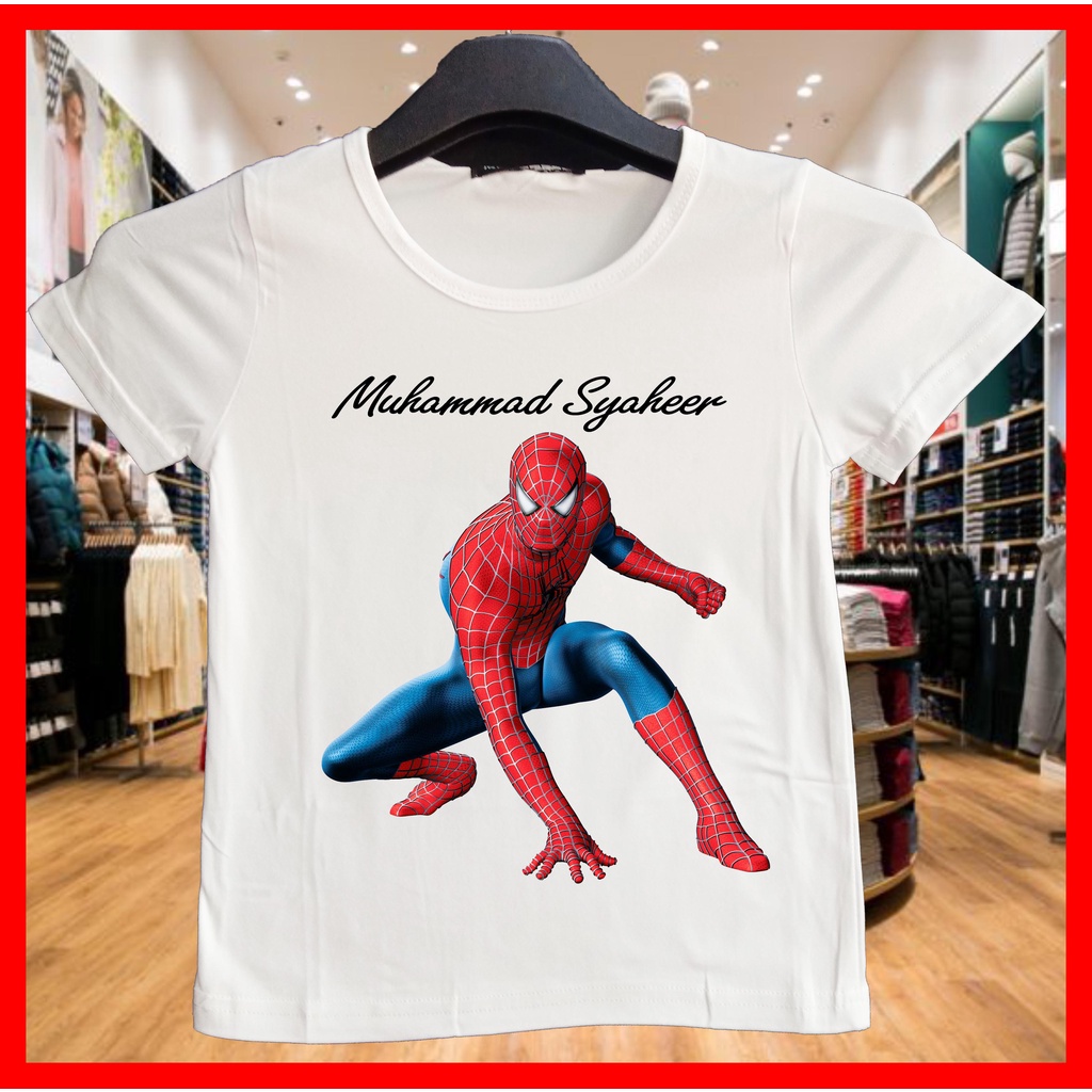 (Malaysia Ready Stocks) Spiderman Kartun T-shirt Cartoon Tee / Boleh Tulis Nama FREE