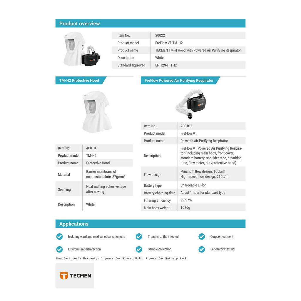 TECMEN TM-H HOOD WITH POWER AIR PURIFYING RESPIRATOR (PAPR)