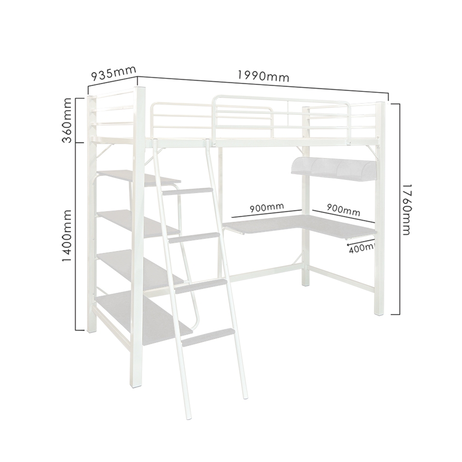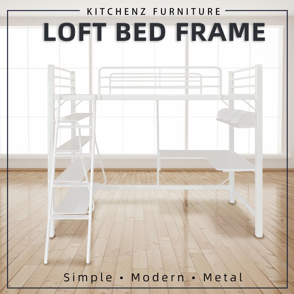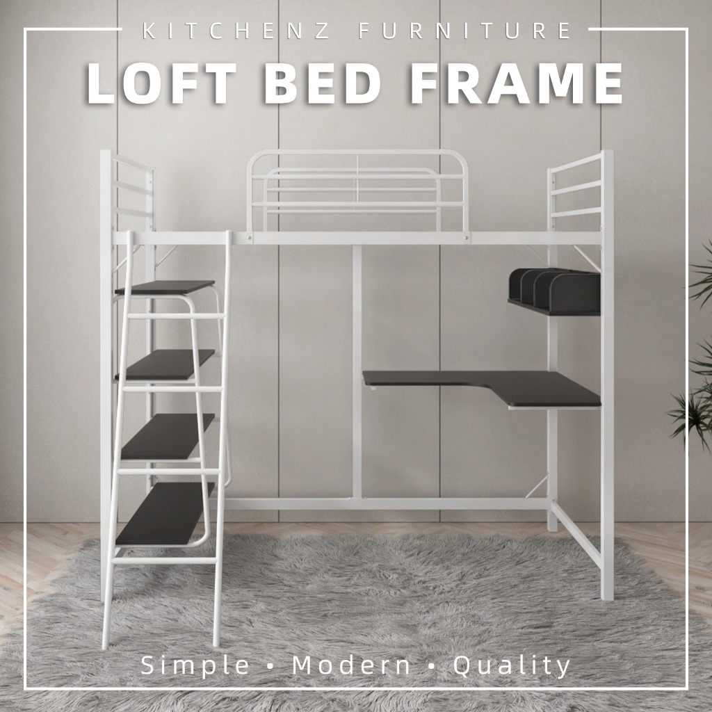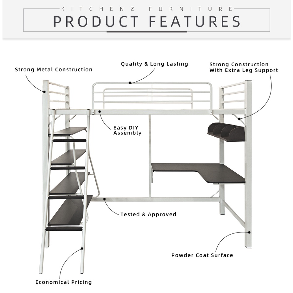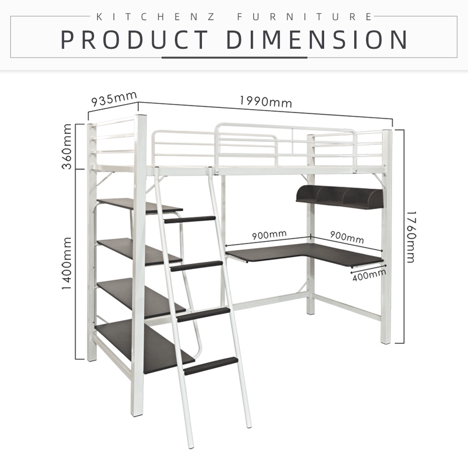 KitchenZ Sabah 6.5FT 3V Loft Bed Frame Study Table & Book Shelves Single Metal Bed Frame -3VAH904/BB8100