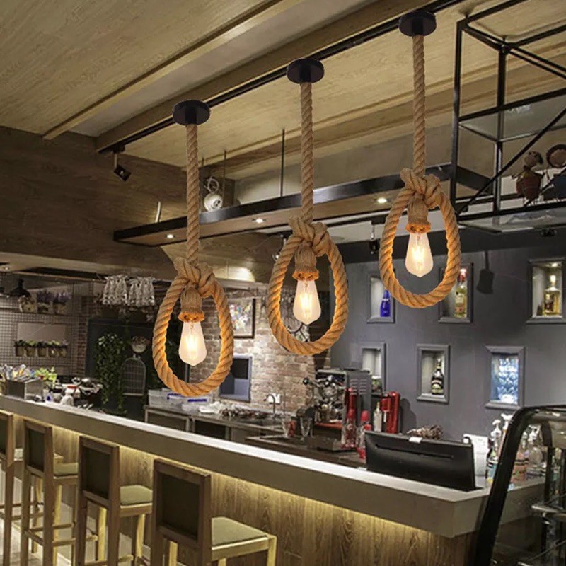 ✓Rope Pendant Lights Industrial E27 lighting diy decor Hanging Lamp
