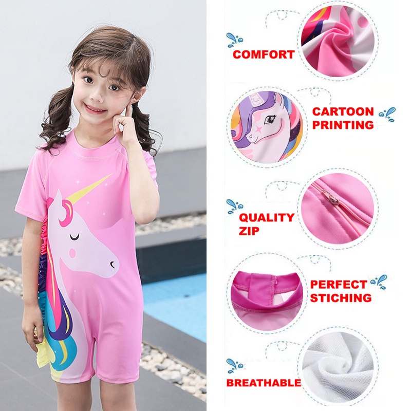 3-12Yrs Baju Renang Budak Quick Dry Kid Swimming Suit Cartoon Cute Muslimah Swimwear Kids Girl Boy Swimwear Baju Renang