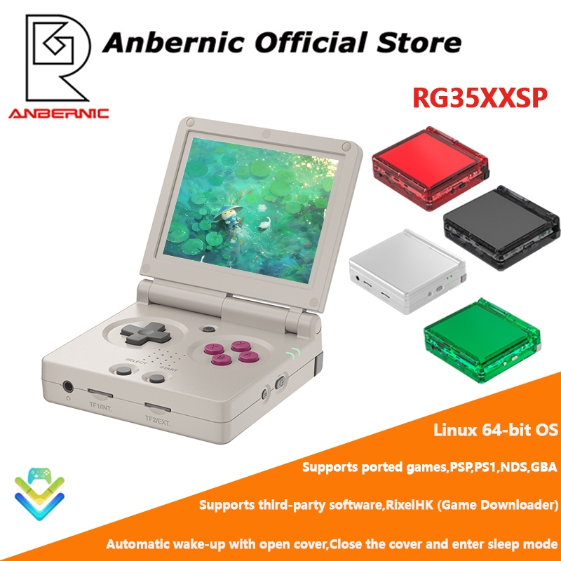 ANBERNIC RG35XXSP flip game console, 3.5-inch screen, Linux system, Hall magnetic switch, supports 2.4G wireless controller and wired controller connection, HDMI connection to TV