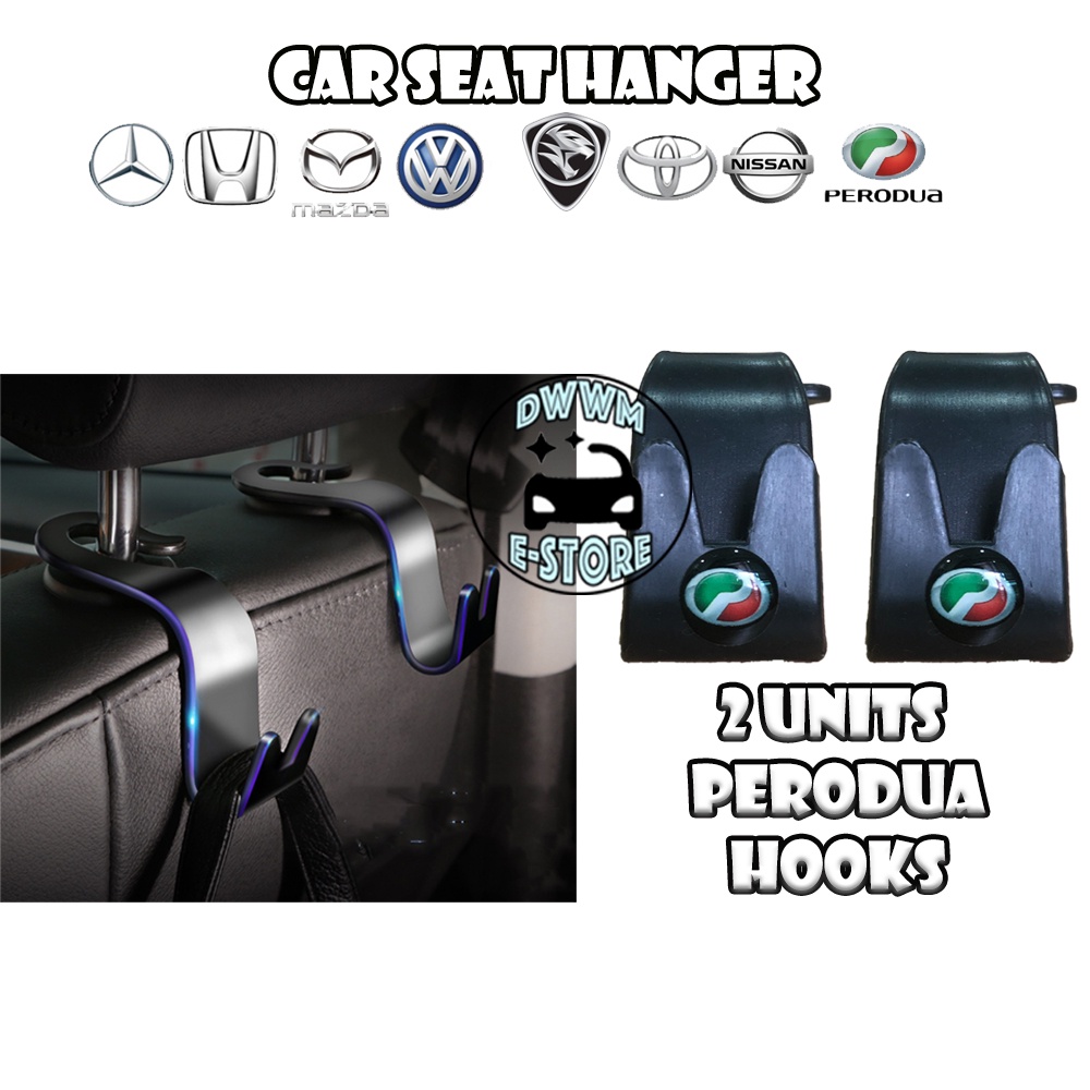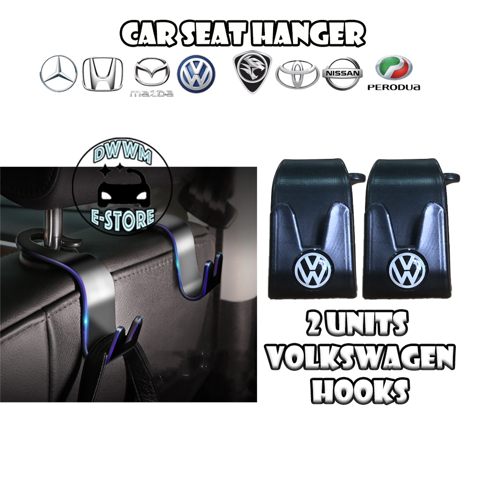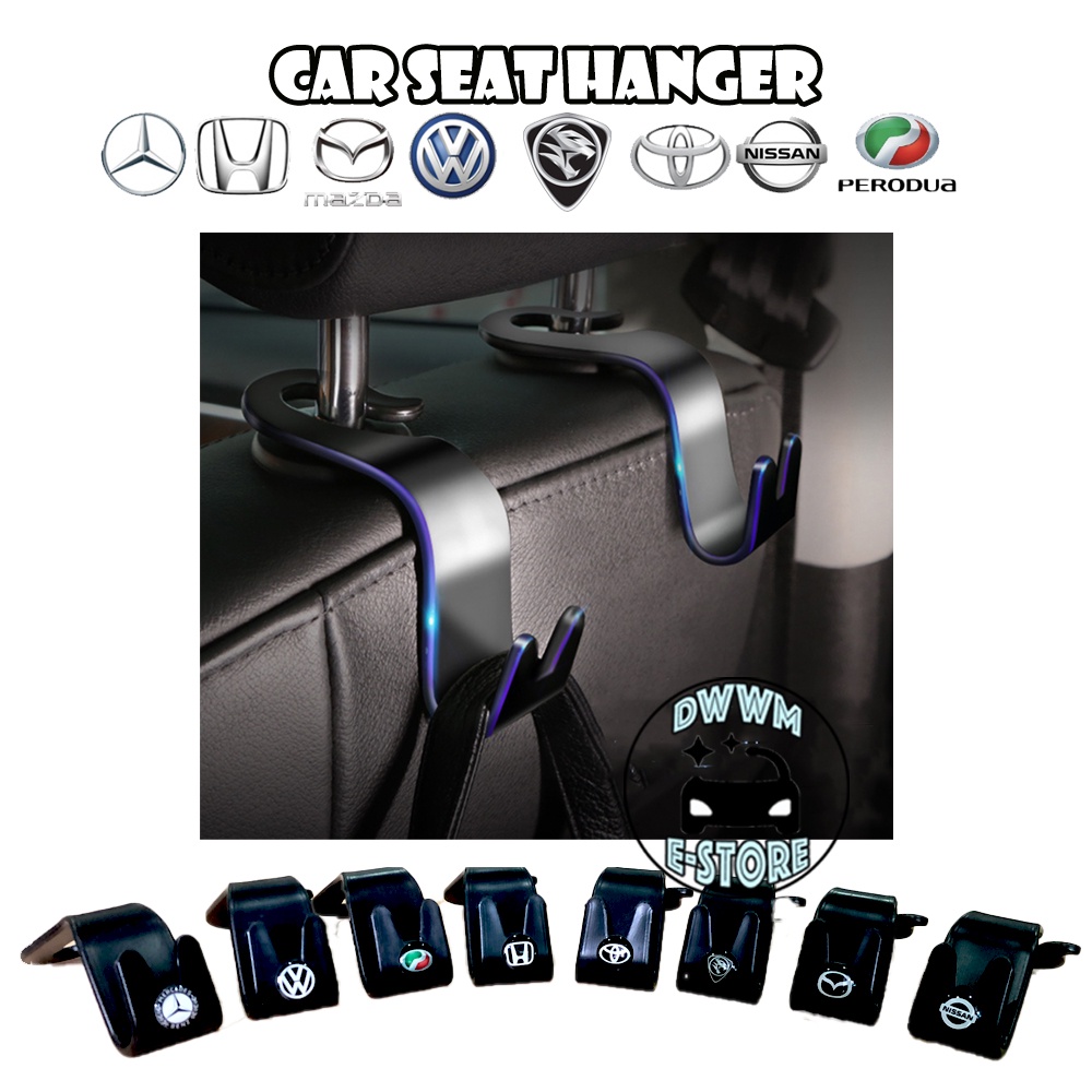 2 Units Car Logo Seat Hanger Hooks durable Hook pengantung kereta 汽车挂钩 Honda Toyota Mazda Nissan VW Perodua Proton Benz