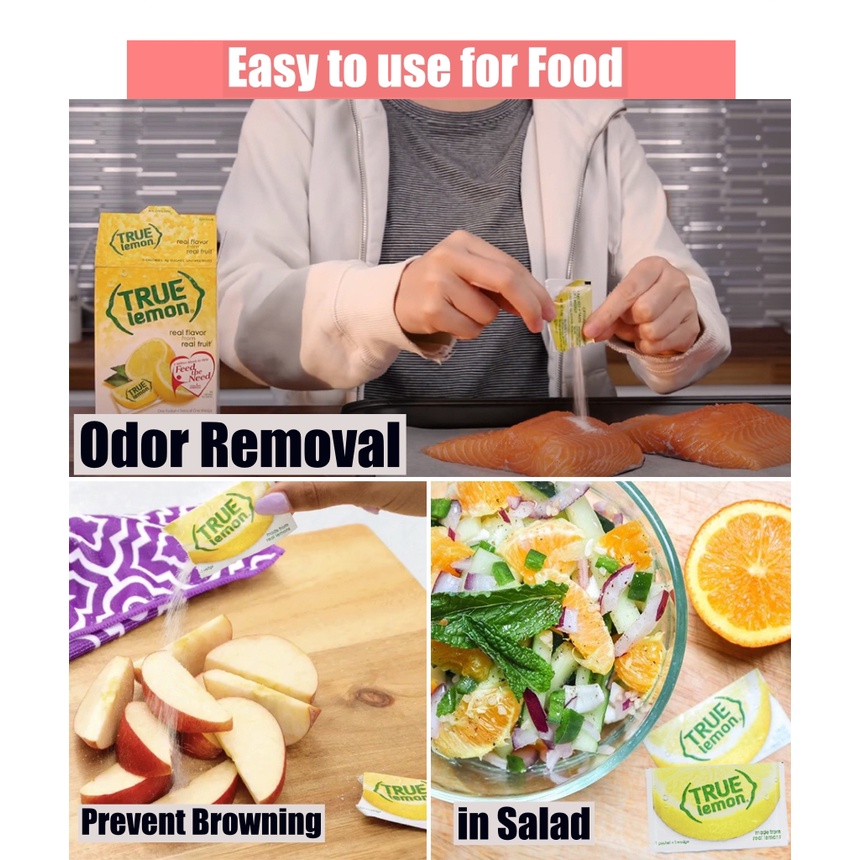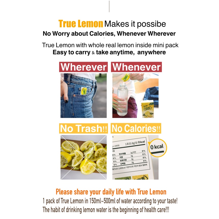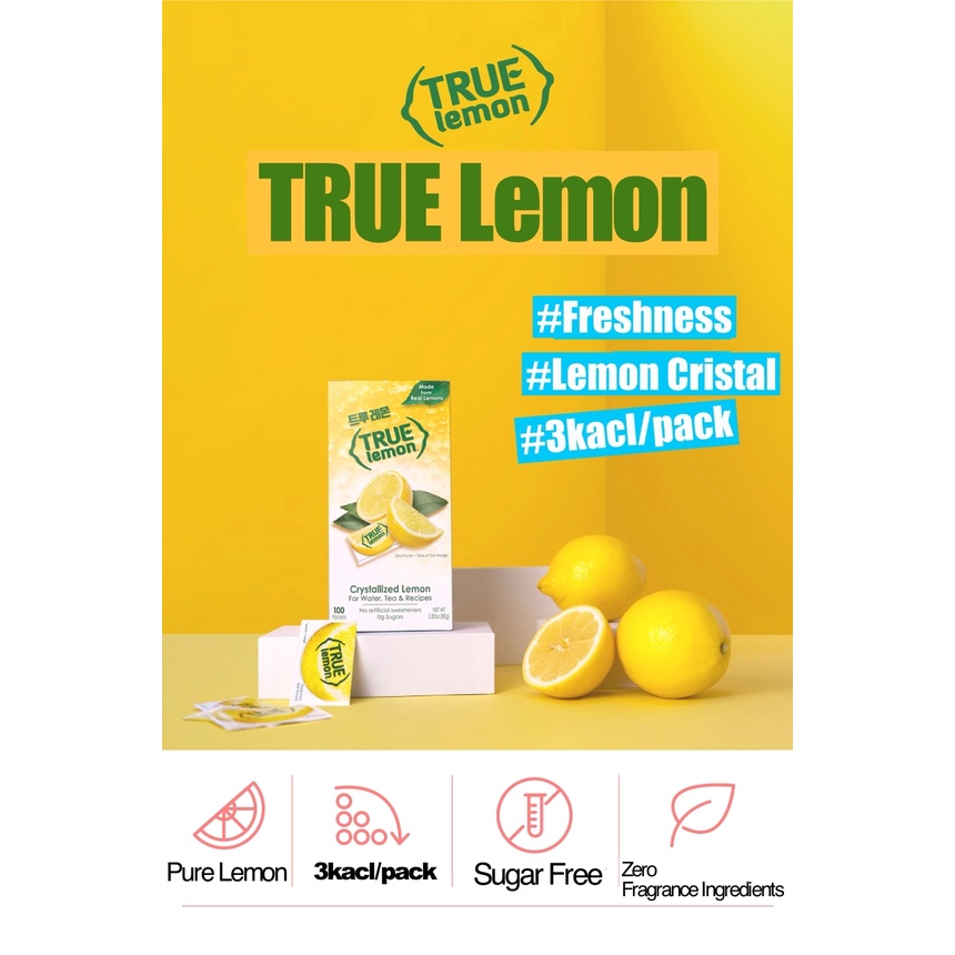 [True Lemon]Crystalized Pure Lemon Powder Zero Calories for Water, Beverage & Other Recipes 80g (0.8g x 100 packets)/Sugar Free, Non GMO, No artificial Sweetener/Preservative
