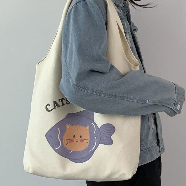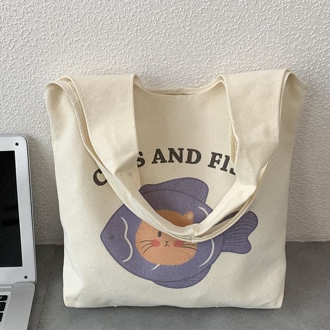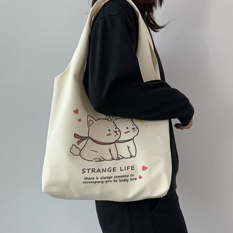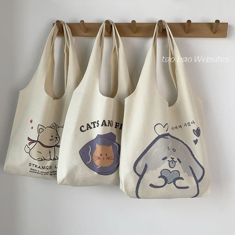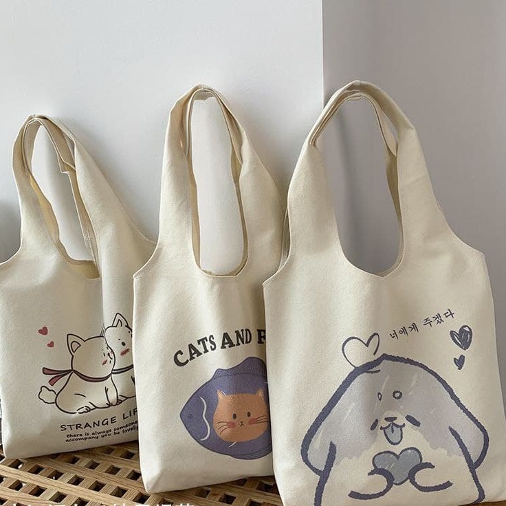 (Ready Stock)Korean Style Large Capacity Shoulder Canvas Bag Casual Shopping tote bag新款帆布包女单肩日系可爱韩风ins大容量学生上课手提背心帆布袋