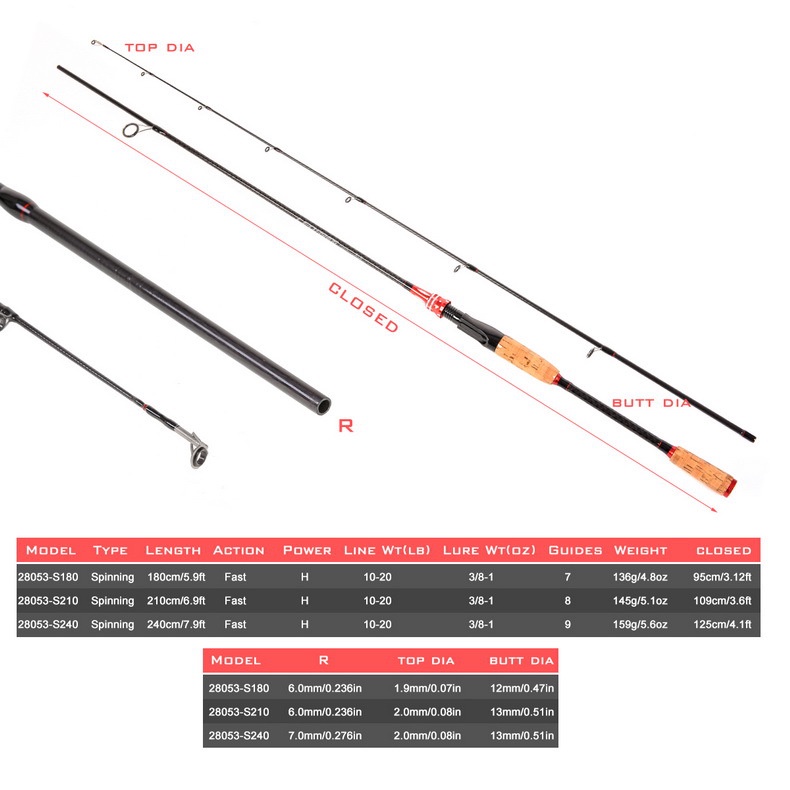 Pancing laut Fishing rod 1.8m/2.1m/2.4m Joran Cast rotating fishing rod Joran Pancing 2-section carbon fishing rod with wood-like handle