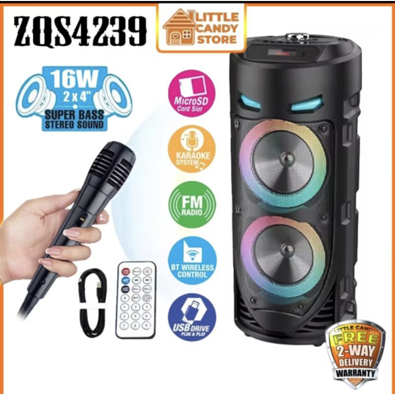 Wireless portable bluetooth speaker with LED /RADIO 4 INCHES x2/SG