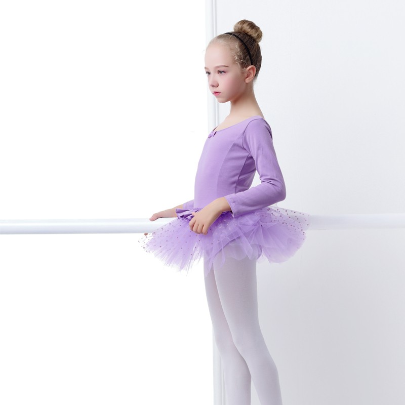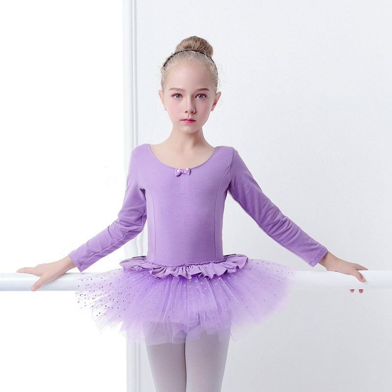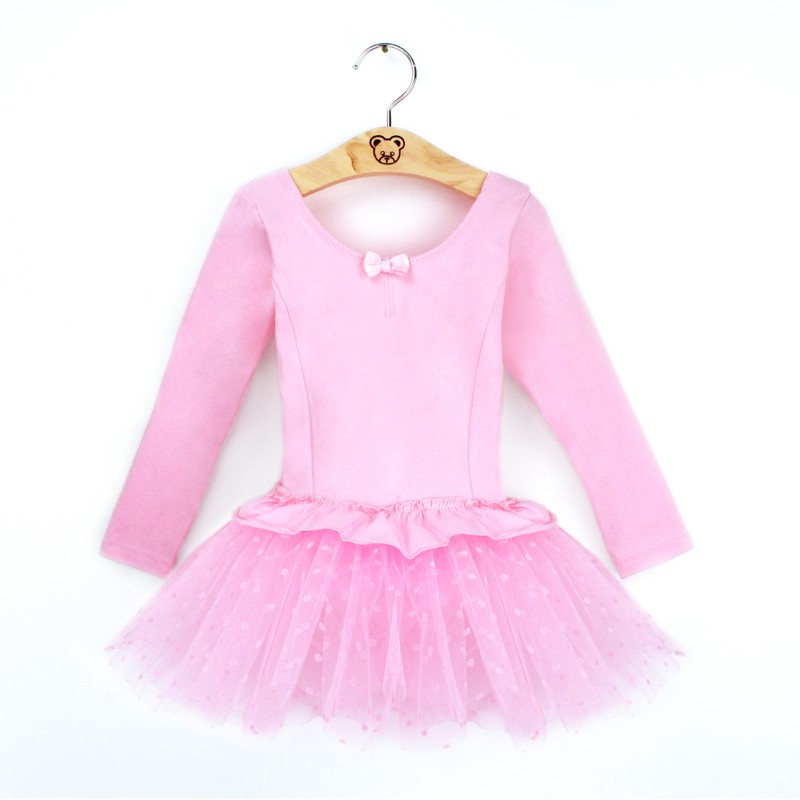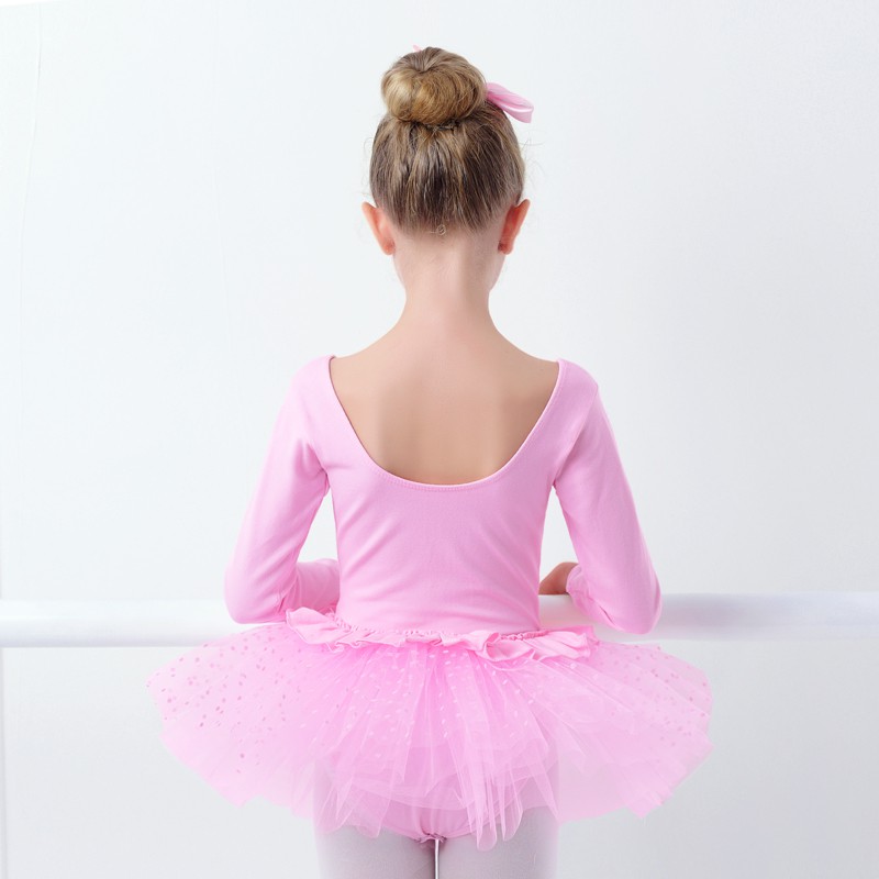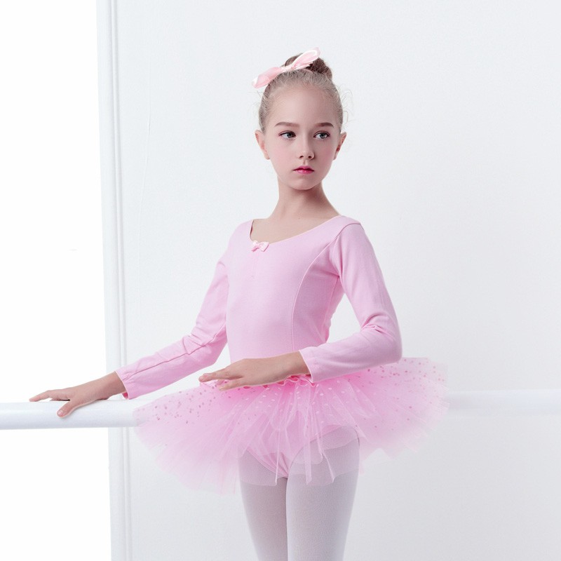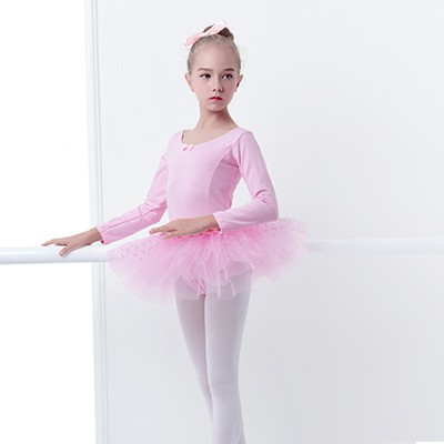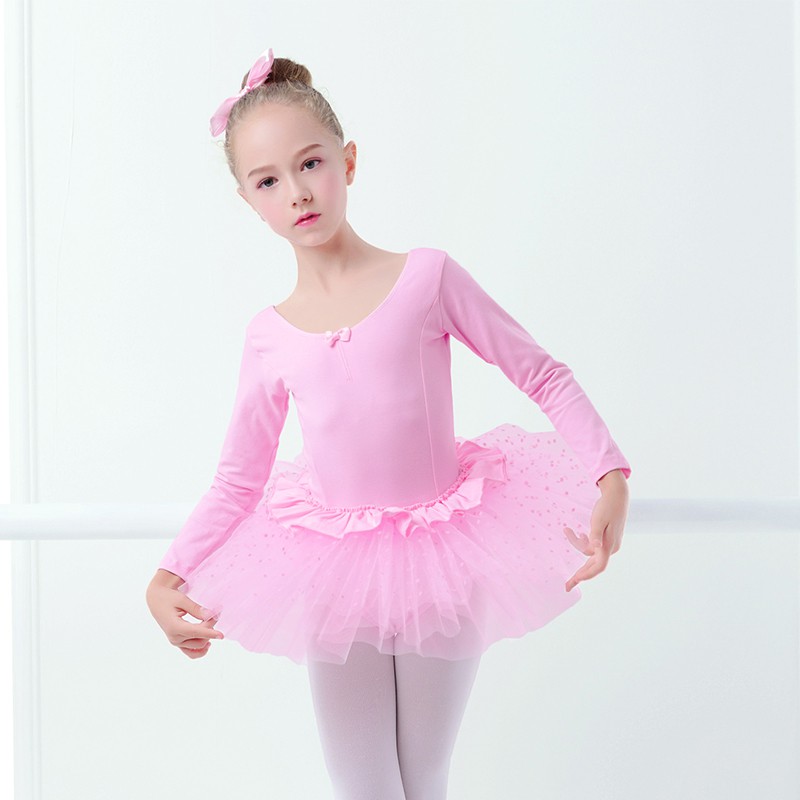 Girls Long Sleeve Cotton Ballet TuTu Child Pink Ballet Dance Dress