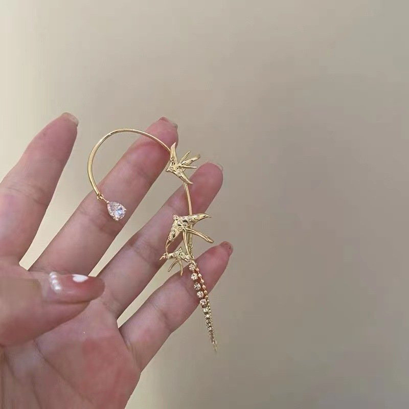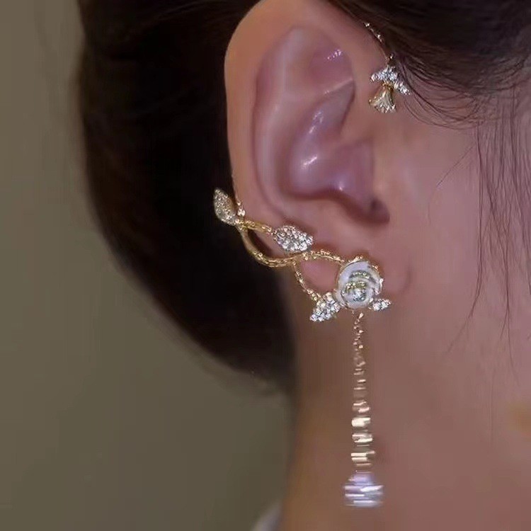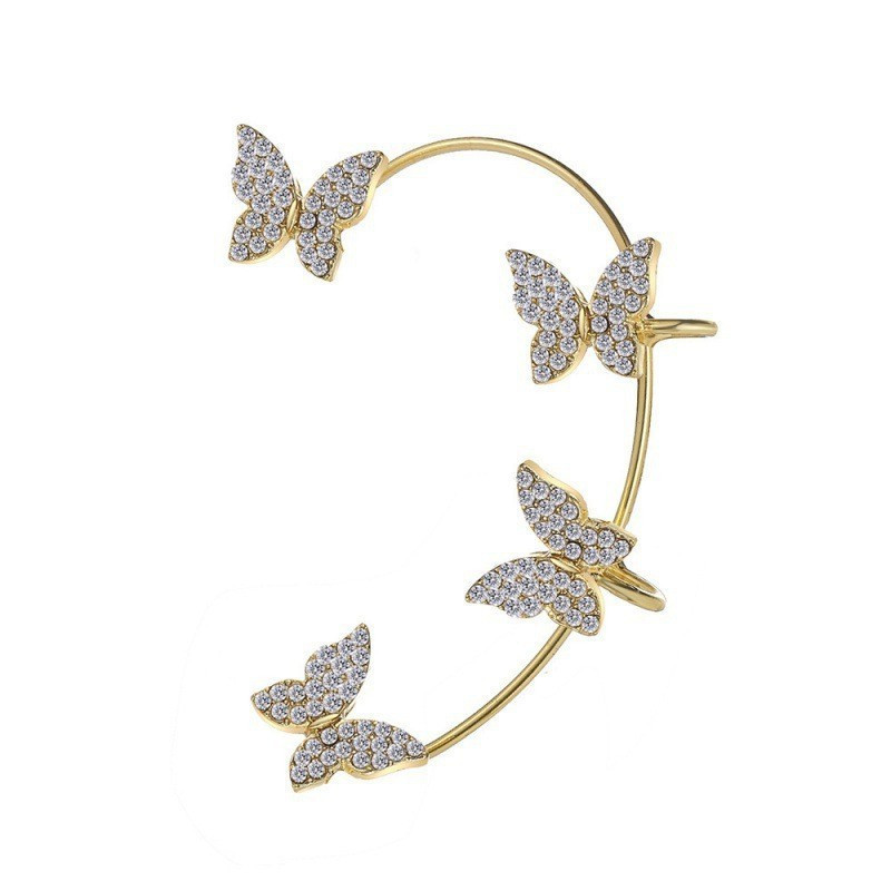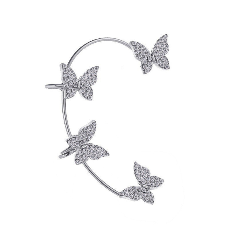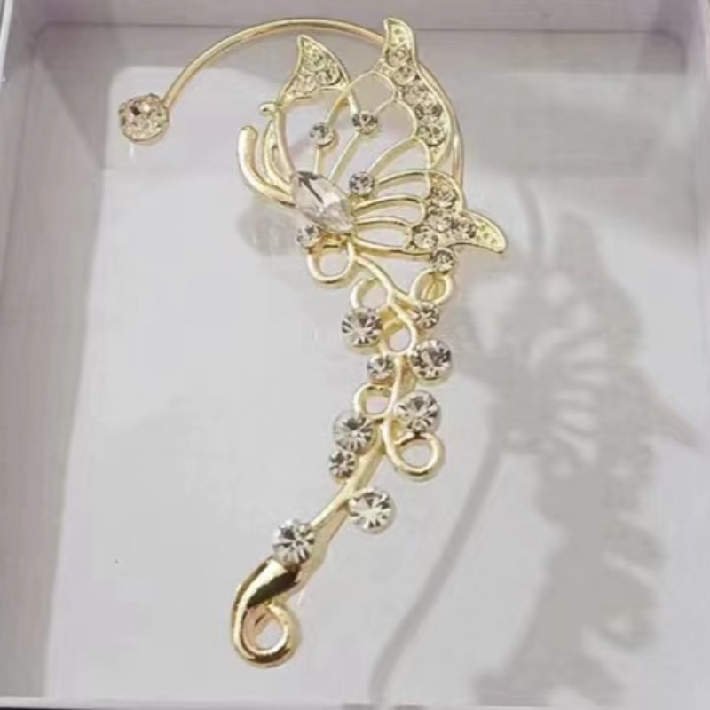 Temperament Shiny Rhinestone Snowflake Butterfly Earrings for Girls Women Fashion Tassel Ear Bone Clip Jewelry Gifts