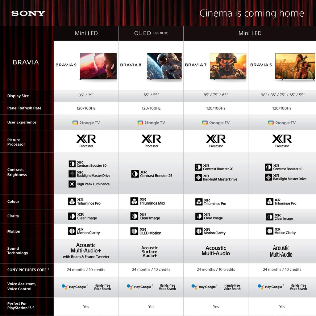 Sony BRAVIA 5 55 65 Inch 4K UHD HDR 120 Hz Mini LED Smart TV Google TV 55XR50 K-55XR50 65XR50 K-65XR50