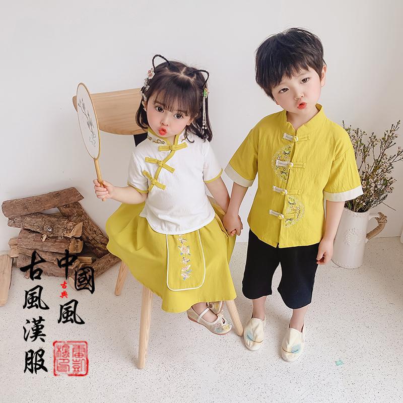 Chinese New Year Clothes Tang Suit Kids Boy And Girl Chinese Style Kids 中国风新年 汉服女童汉服 唐装男童 套装 中国风 汉服 兄妹装儿童 CNY Kids Clothes Hanfu Boy Girl Cheongsam Tang Suit Summer Chinese Style Kindergarten Baby Spring Autumn Children Performance One Piece Shipment