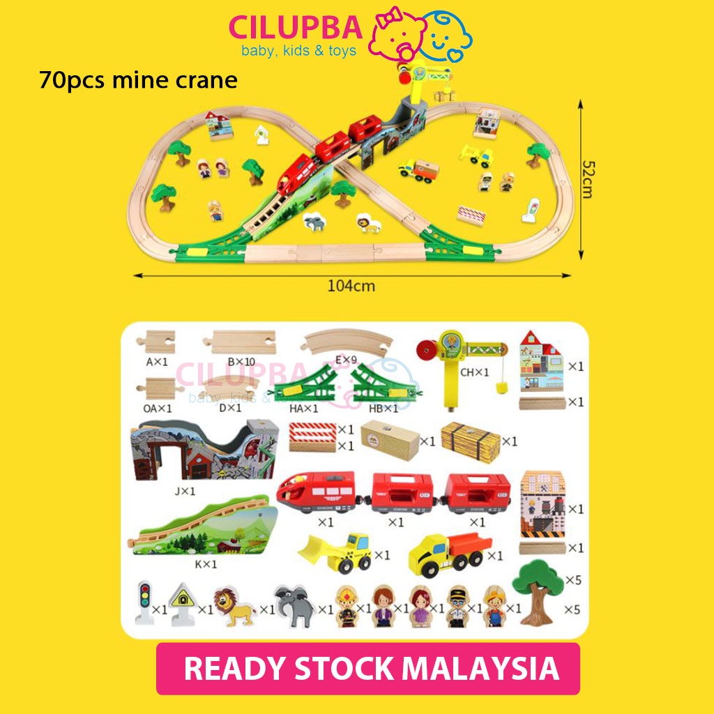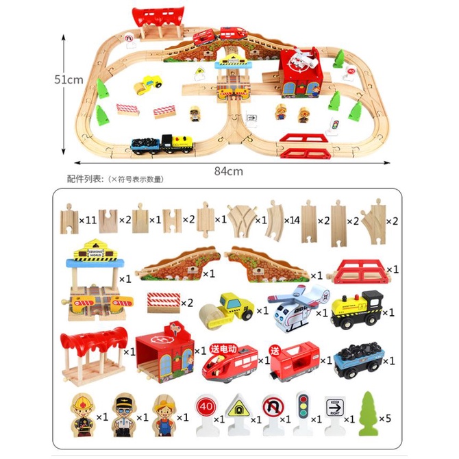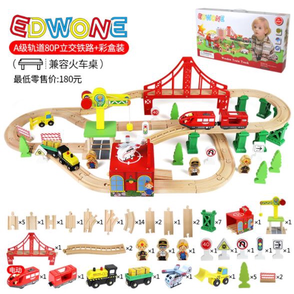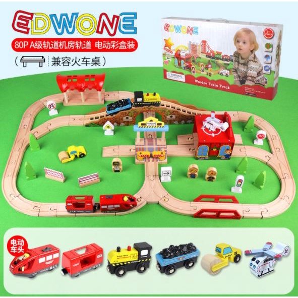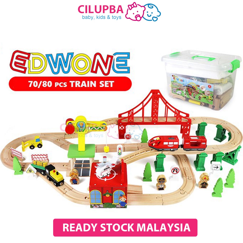 CILUPBA Edwone 70Pcs 80Pcs Wooden Train Set with Battery Locomotive Train Track Toy