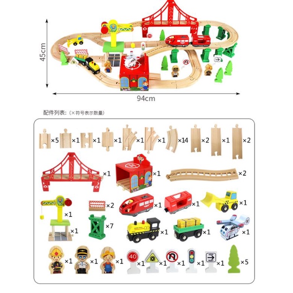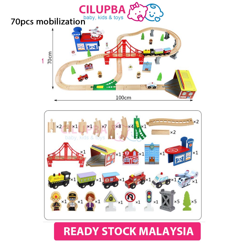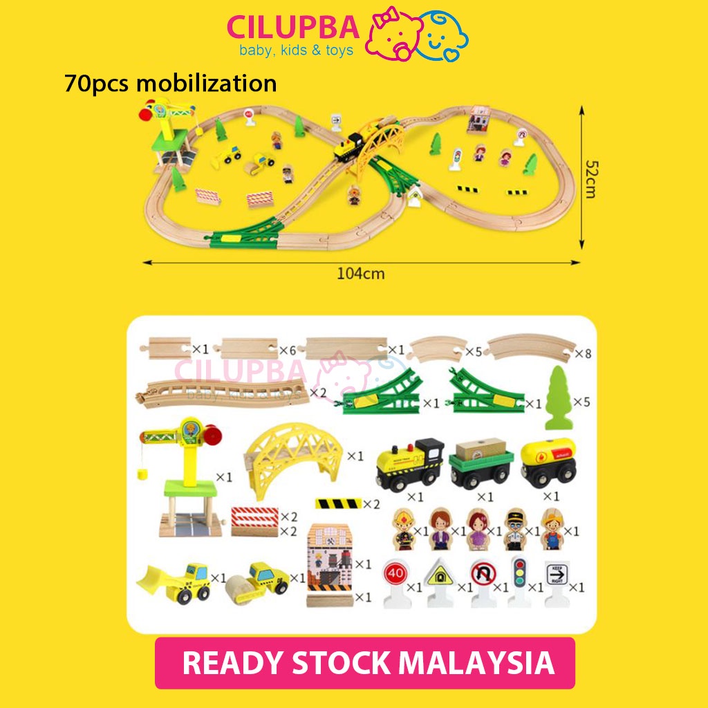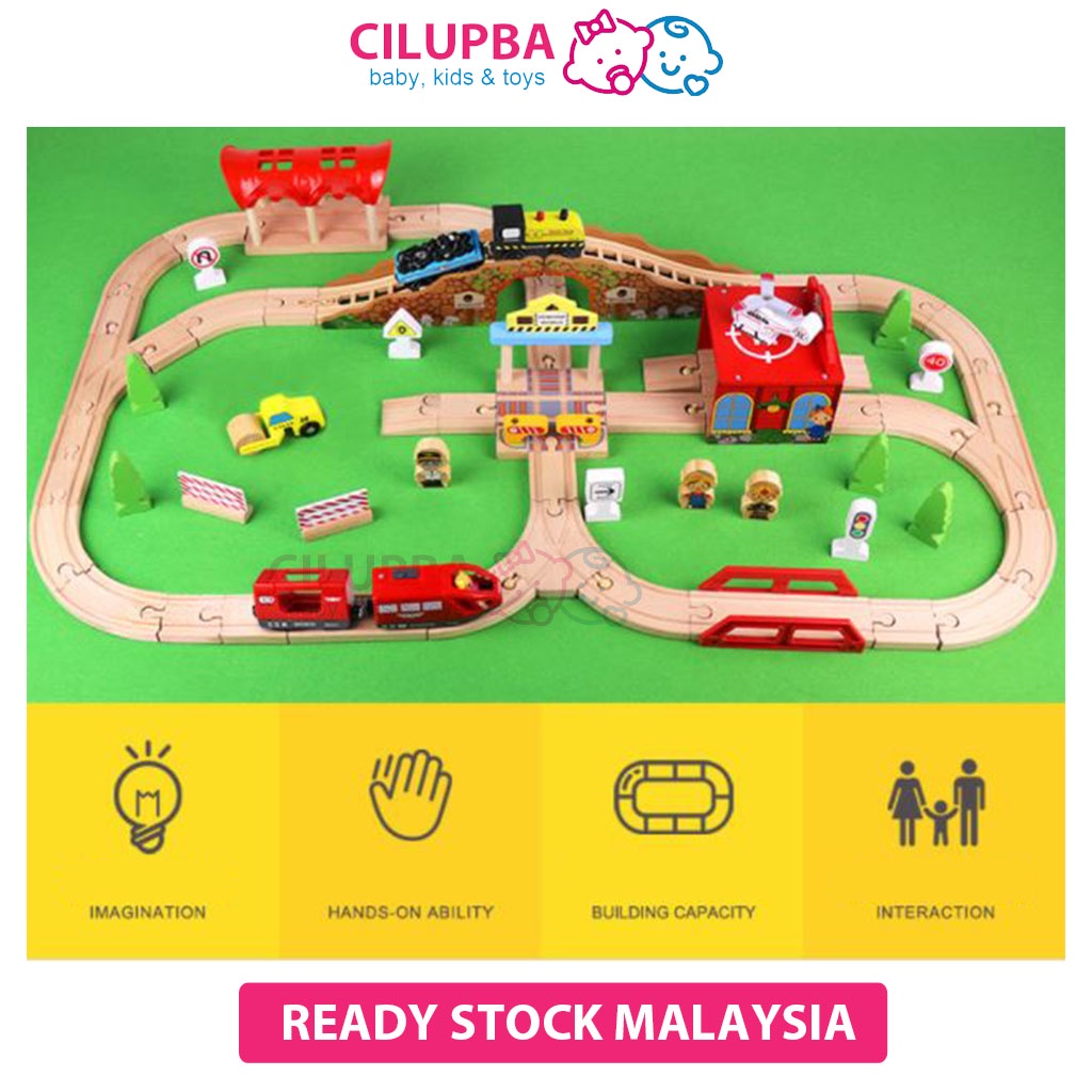 CILUPBA Edwone 70Pcs 80Pcs Wooden Train Set with Battery Locomotive Train Track Toy